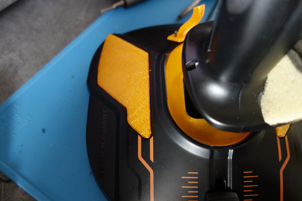 Des caches qui viendront à la place des boutons de la base du Joystick. Coup de bol, j'ai du TPU orange qui est exactement de la même couleur que la décoration d'origine du joystick.
