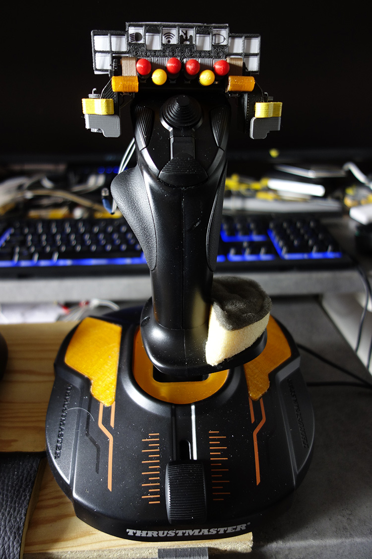 Bref tout cela m'a décidé à déporter les 12 boutons de la base des manches vers la tête du joystick. Ainsi, TOUTES les commandes seraient accessibles d'un simple appuis du pouce.