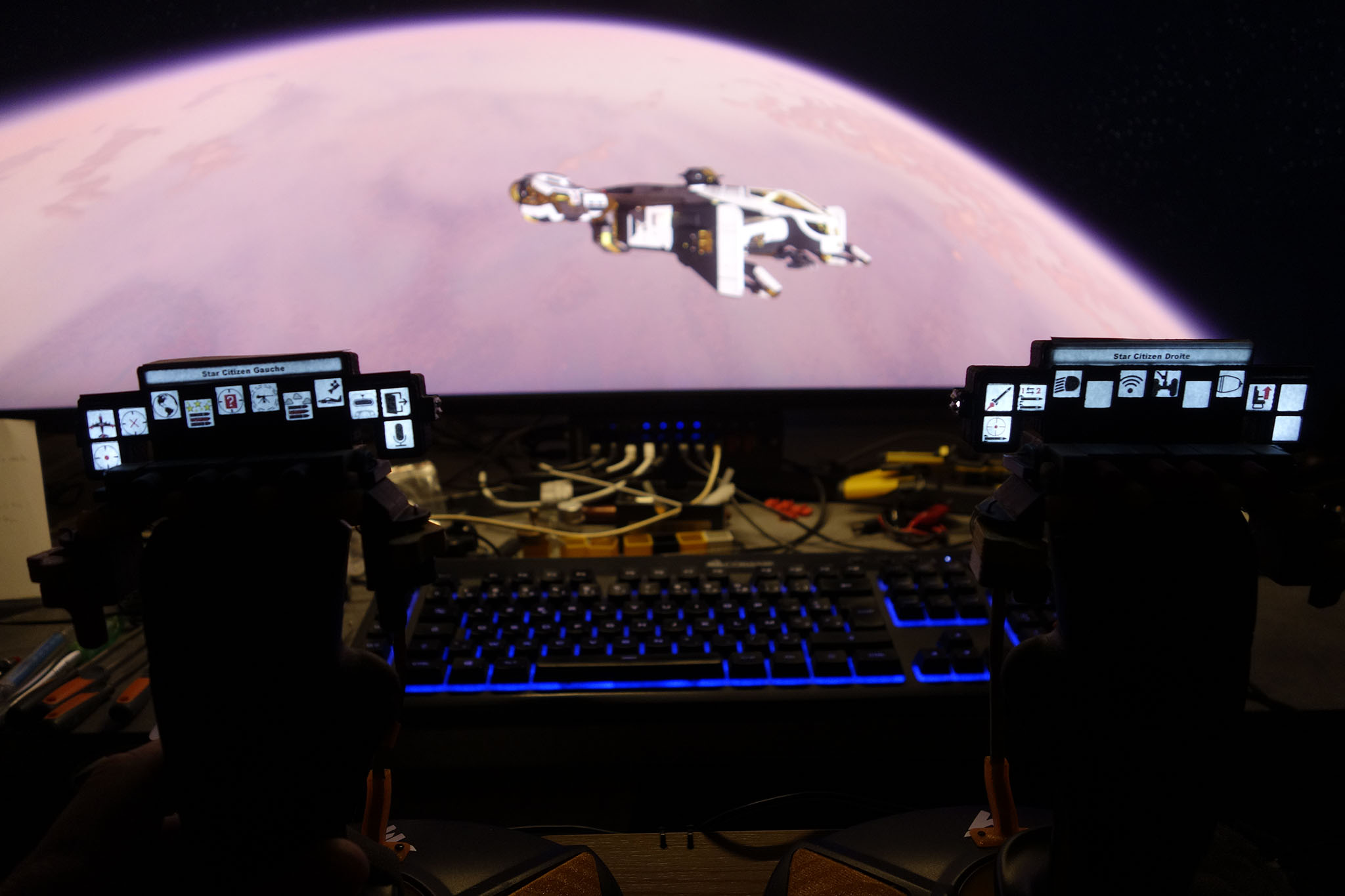 Joueur en réseau sur des simulateurs de vol et grand fan de Star Citizen dont je pourrais vous entretenir pendant des heures, j'ai acheté un ensemble de 2 Joysticks de la marque Thrustmaster, modèle T16000M, renommés pour leur excellent rapport qualité/prix.