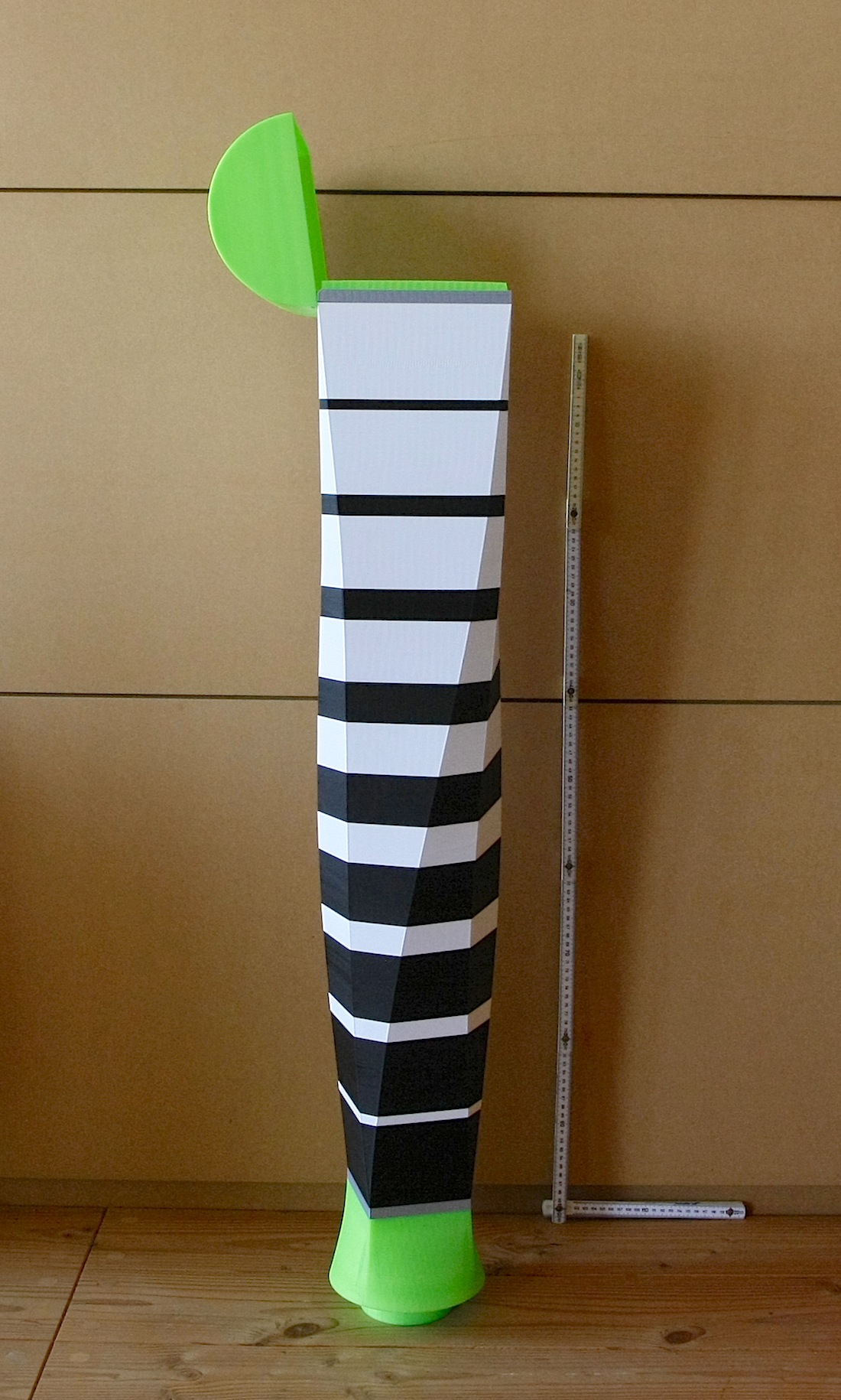 Ce sont donc 21 étages qui s'assemblent par emboîtement et vissage pour constituer une tour de 111cm de haut. Celle-ci s'empale sur un tube de PVC de 90mm (tube de descente d'eau de toiture) qui est enfoncé profondément dans le sol.