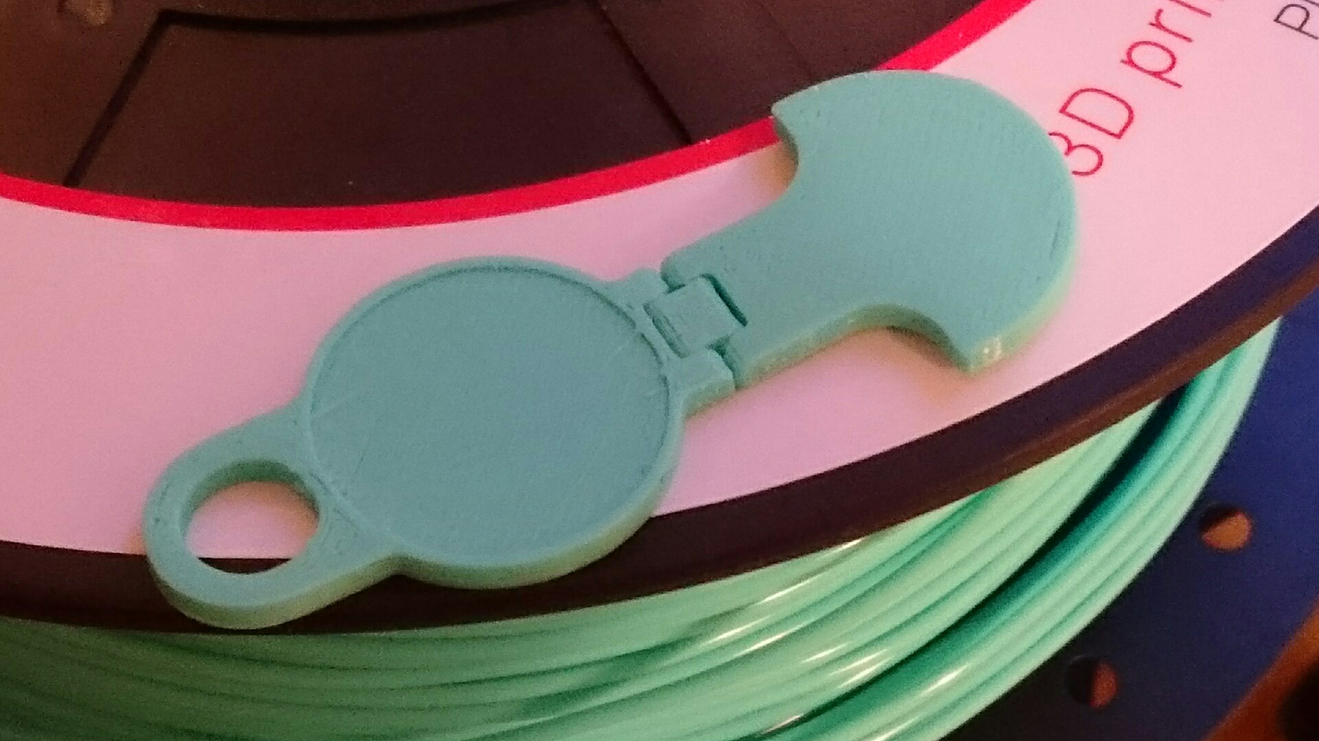 J'ai fais le test du gcode faux jeton très très bas sur le plateau,j'ai uniquement changé le star gcode et le end gcode, avec le pla gris de BQ le résultat n'est pas aussi bon, c'est un très bon exercice pour le Z0, la charnière fonctionne parfaitement.