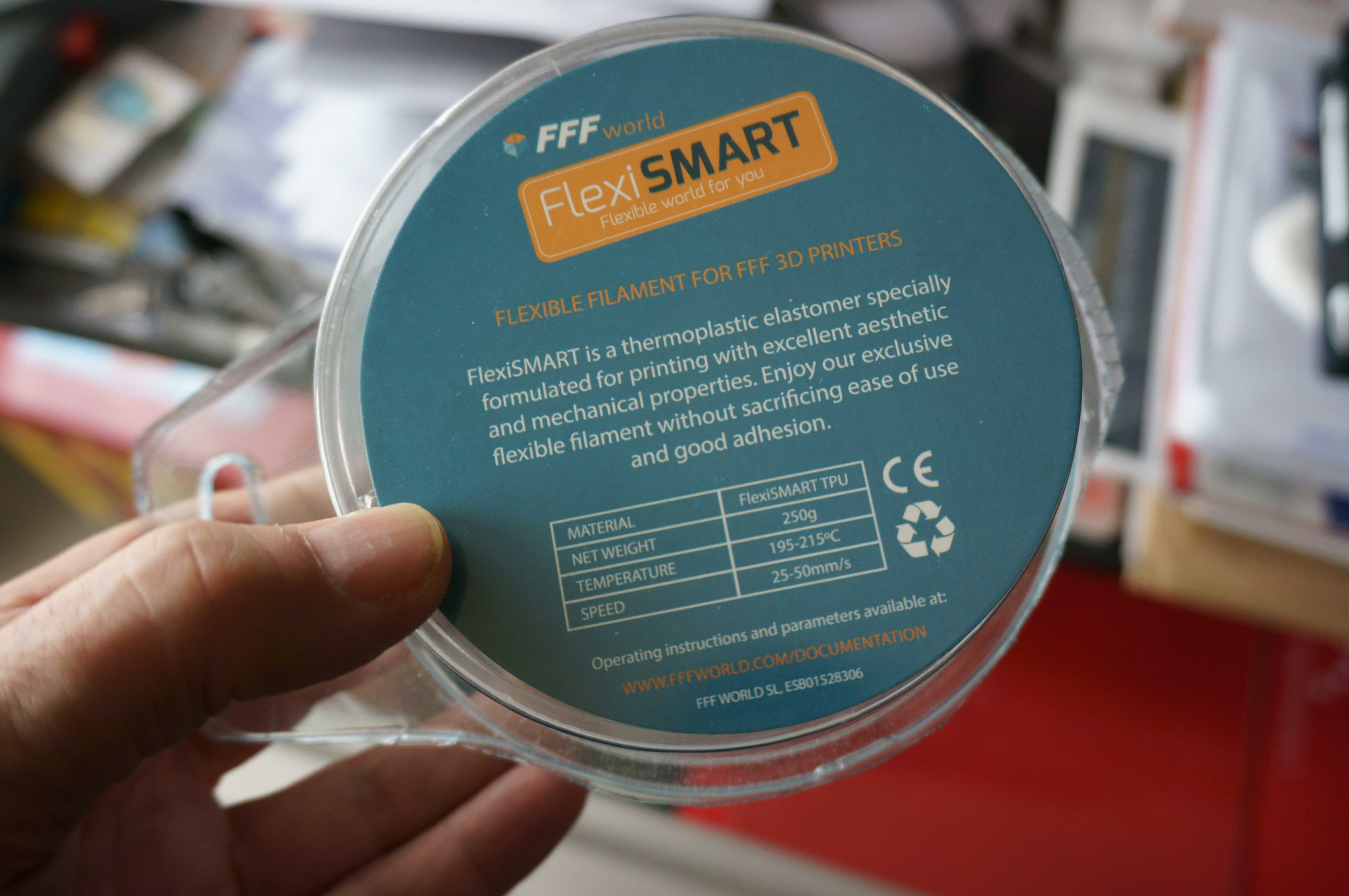 J'ai récemment pris sur ebay une bobine de filament flexible "FlexiSMART" de FFFworld.