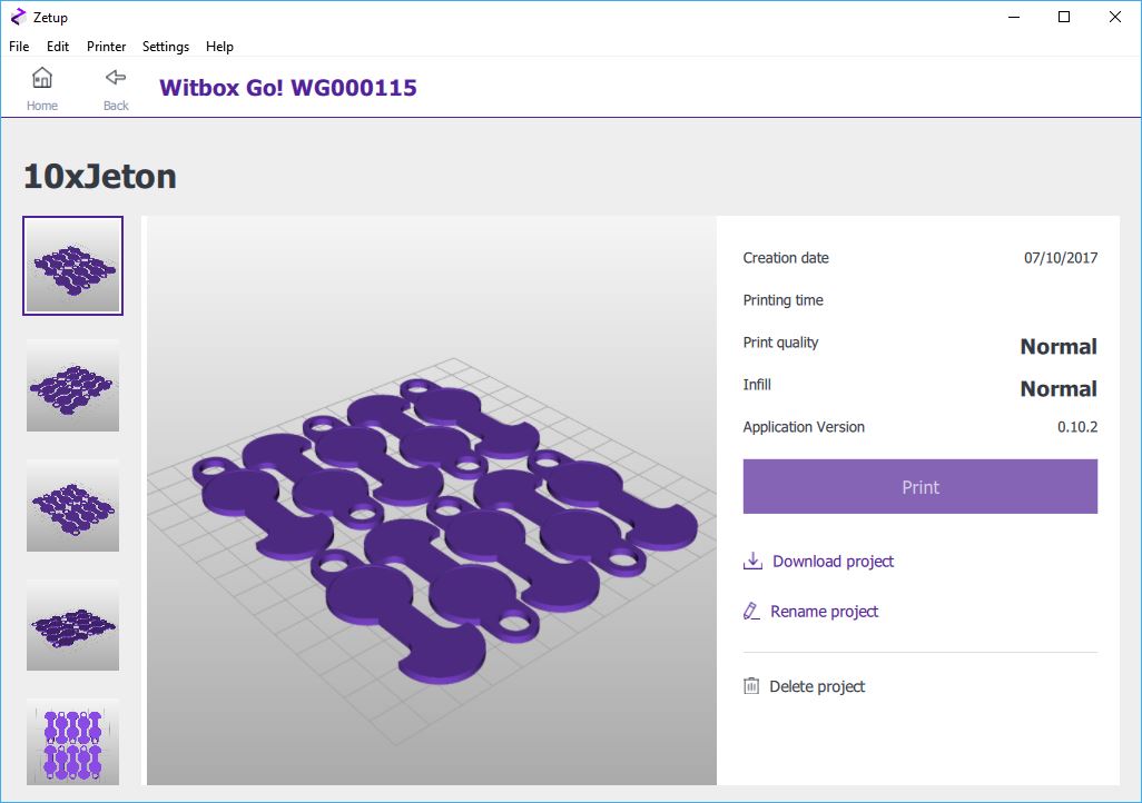 Zetup étant un logiciel client de l'imprimante, il peut être ouverte sur votre PC, votre tablette ou votre téléphone, vous y trouverez les mêmes informations. Après le lancement d'une impression, vous pouvez fermer l'appli, l'imprimante continuera son travail. Pour le moment il n'y a que l'appli Windows et Android qui fonctionne. dans 2 mois la version IOS sera dispo.