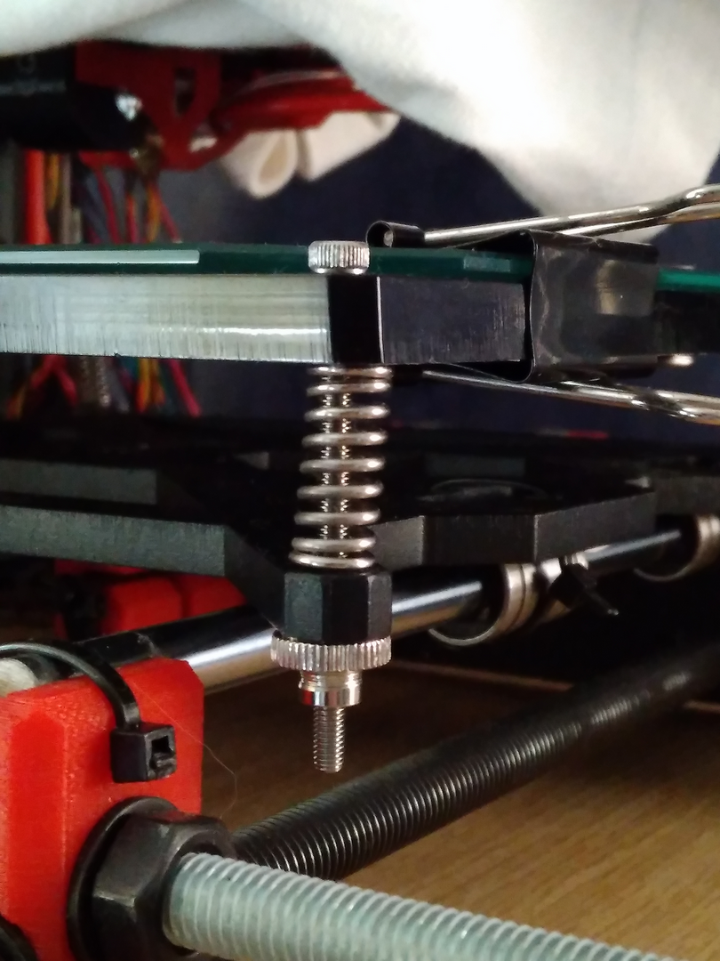 Un des problèmes est que le vis est un peu trop long pour l'Hephestos mais aussi que le système de réglages est inadaptés (apparemment) puisque que le réglage de base se faire grâce au pas de vis du chariot, donc lorsque que j'ai essaie de régler avec la molette et bien ça n'entraine pas le plateau mais cela bloque le réglage ...
