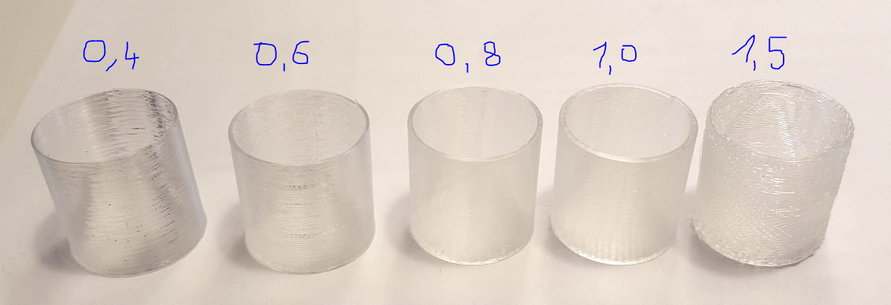 La qualité du refroidissement est primordial et doit être combiné avec la vitesse d'impression (en l’occurrence 35mm/s) L'épaisseur du mur reste constante de 0,4 à 1mm On remarque que le dessin de la base est en fonction des murs, de 0,4 à 1,5mm