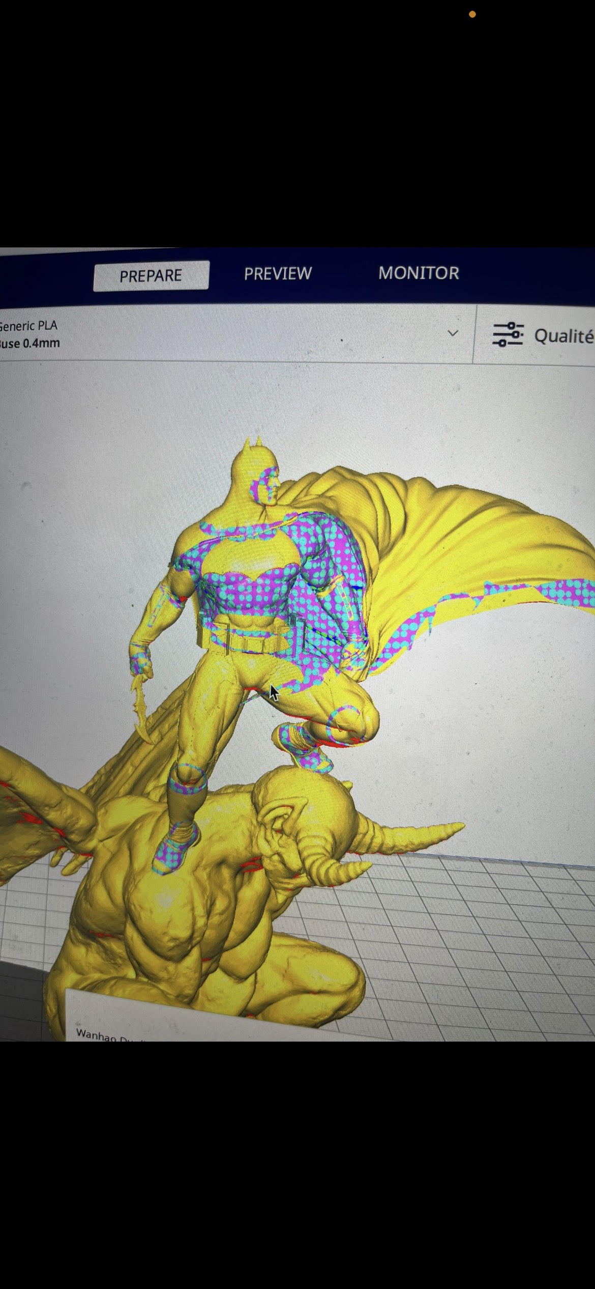 Il est aussi nécessaire de penser à comment l'imprimer, une couche supportant l'autre, tout n'est pas possible sans mettre de disgracieux supports qui vont êtres plus ou moins laborieux à retirer. Sur des personnages, il est souvent plus judicieux de faire des pièces à assembler.