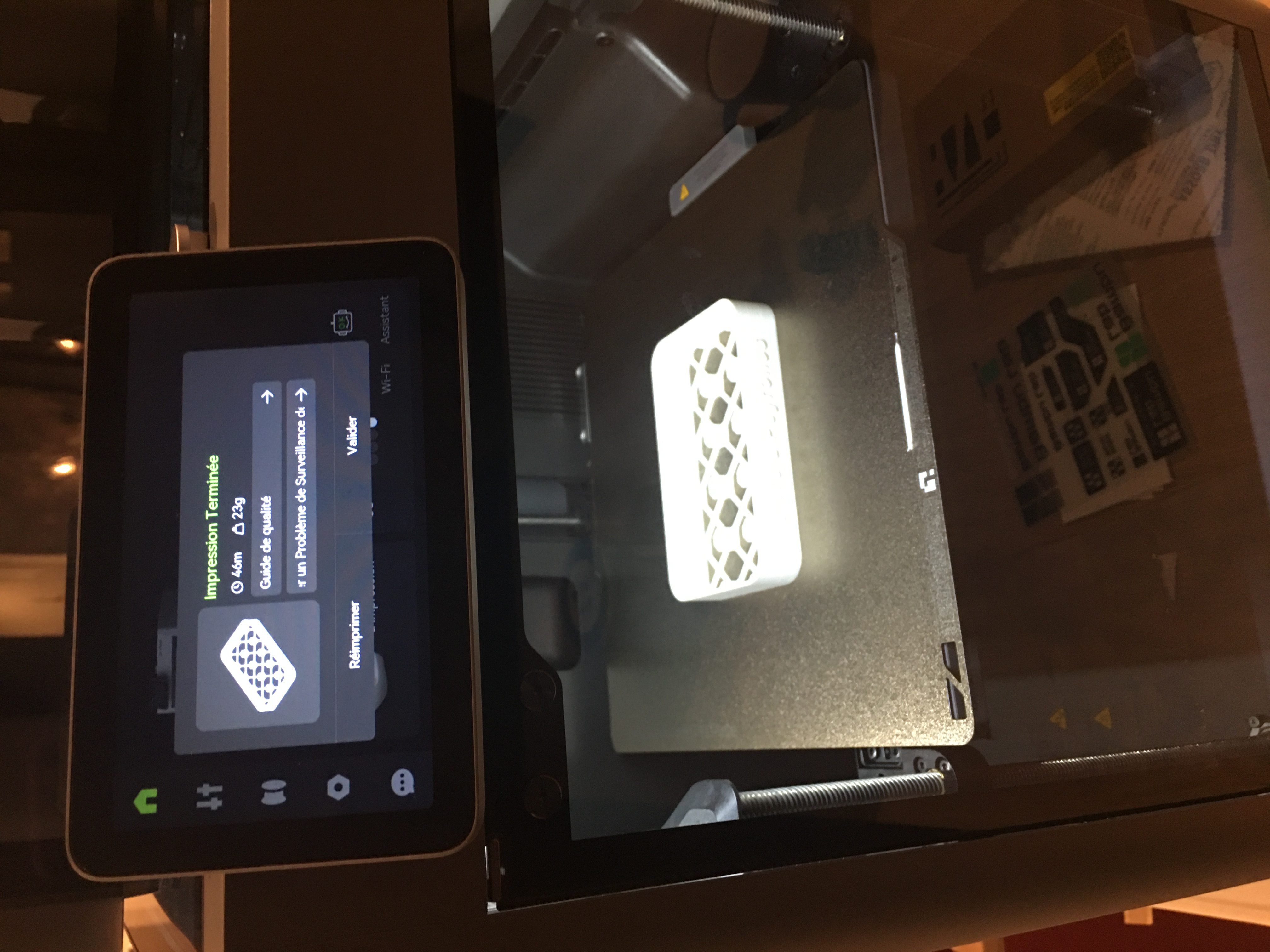 L'écran affiche absolument tout, la pièce, la température de la buse, du plateau et même celle de l'enceinte qui est thermo régulée par un système de clapet afin d'être dans mon cas à 30° en permanence.