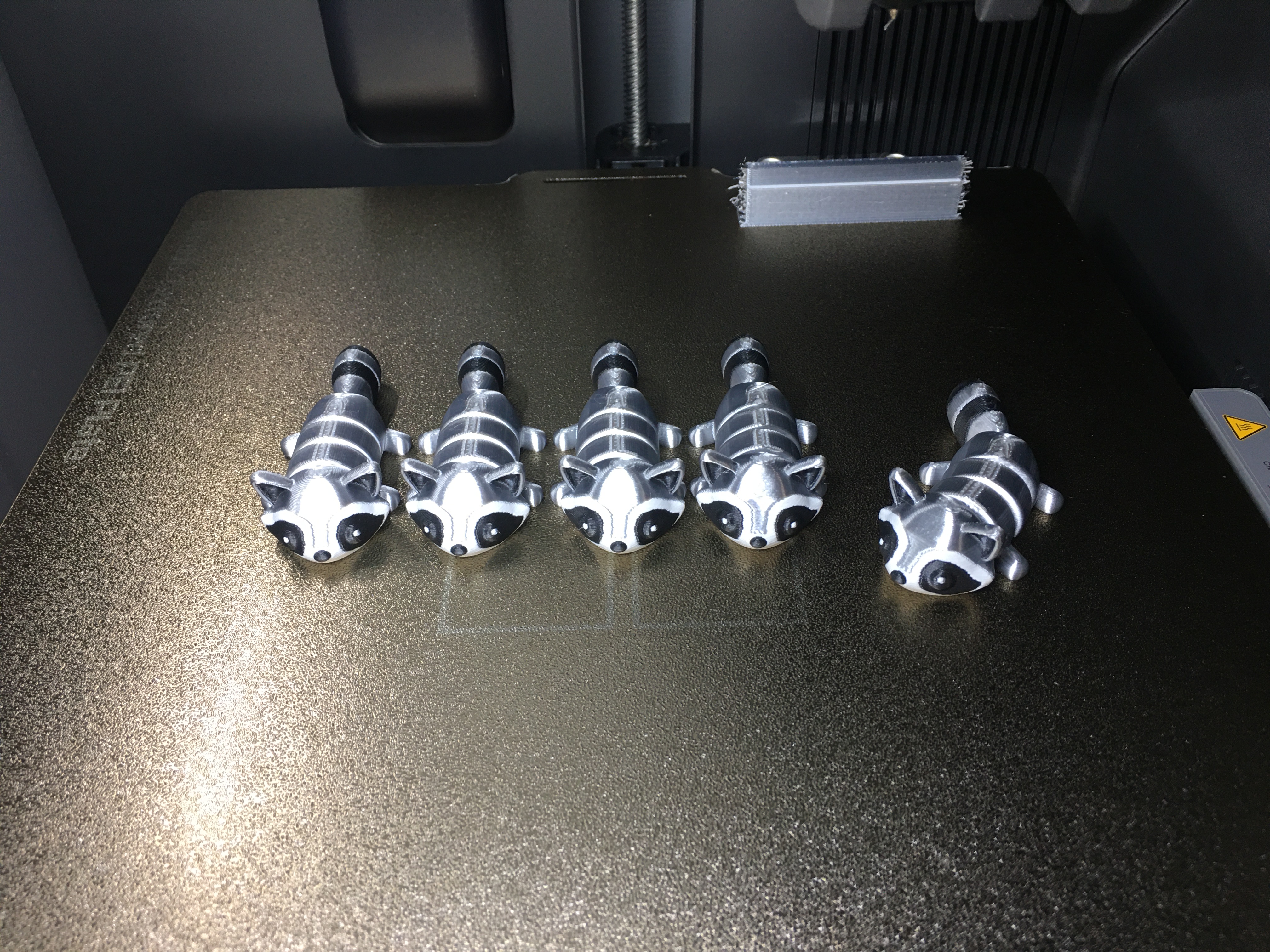 10 impressions dont une de 8h en 3 couleurs, rien à dire si ce n'est une pause, l'IA ayant détecté une obstruction au niveau de la trappe de purge. En effet des "crottes" de purges à enlever et tout repart pour terminer les 8 heures de travail.