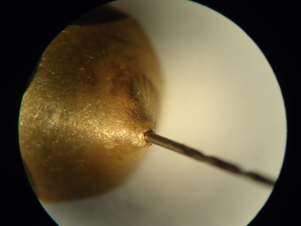 Le foret présent n'est q'une illustration, il a été inséré à la main afin de montrer que la buse est bien vide et que son diamètre n'a pas changé