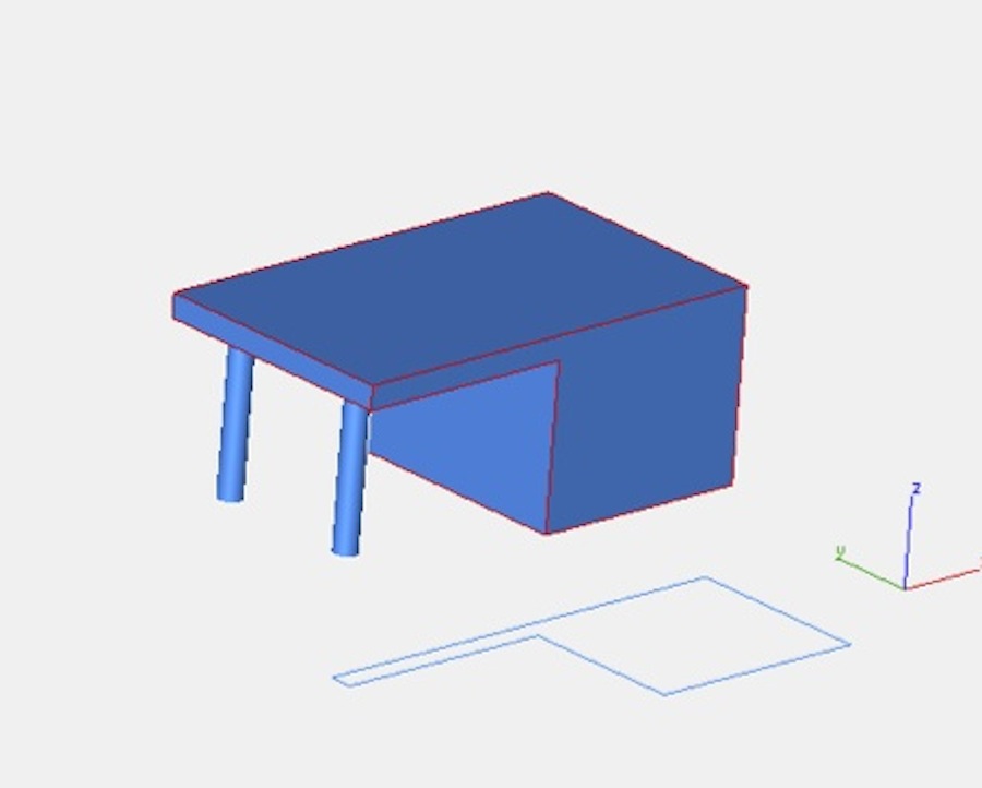 De fait, ce volume ne tient à rien, est dans le vide et Cura va un peu chipoter pour le raccrocher comme il peut (les bavures) au reste. Et de fait, il devient indirectement un soutien pour la terrasse qu'il sera plus aisé à enlever