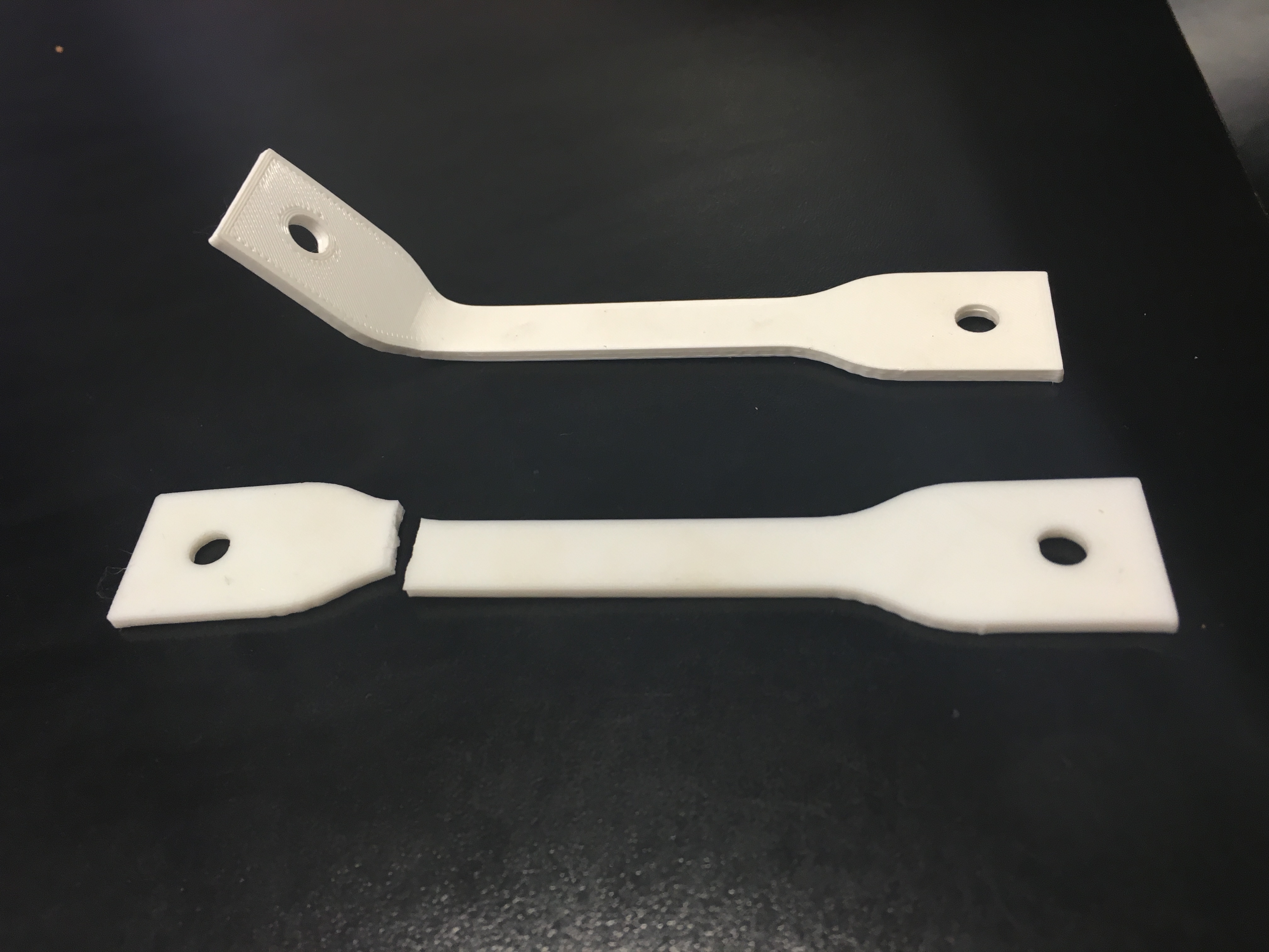 Avec une charge de 3,90 kg la pièce imprimé avec du filament de BQ s'est cassé