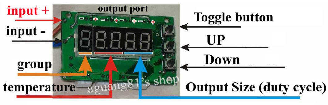 Repérer les fils + et - de la puissance car nous en avons besoin pour y connecter le ventilateur et la led qui sont tous deux polarisés.