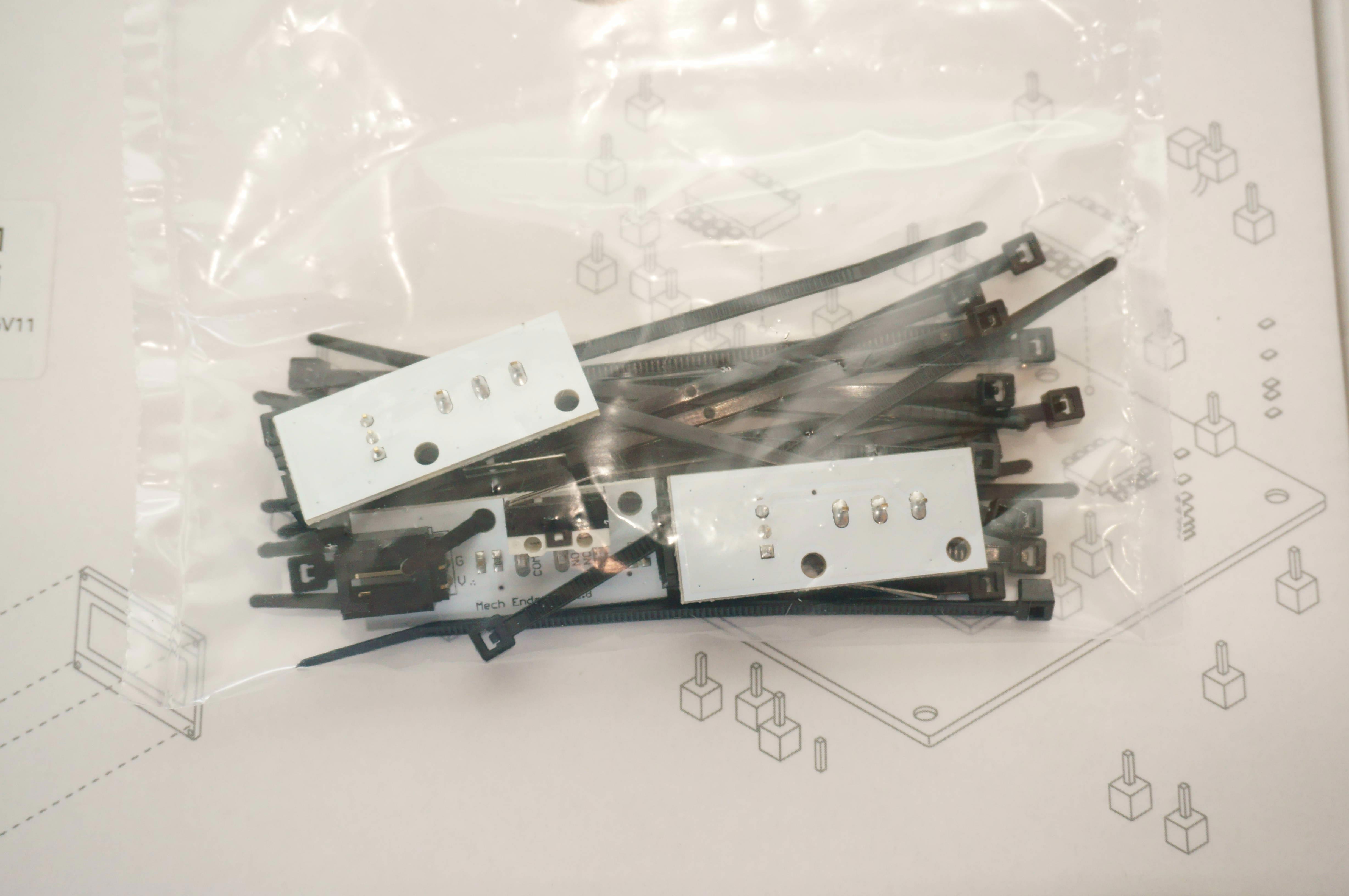 L'ensemble des câbles est à la bonne longueur, ce qui permet une réalisation propre. Les endstop sont du même type que ceux de la version précédente. La visserie et les quatre molettes pour la mise à niveau du plateau Y. Poulie crantée pour l'axe X. Ici, on voit qu'il n'y a plus l'ergot pour l'endstopX, ce qui n'empêche pas la détection pour l'instant ! Apparition d'un ergot pour le support de bobine.