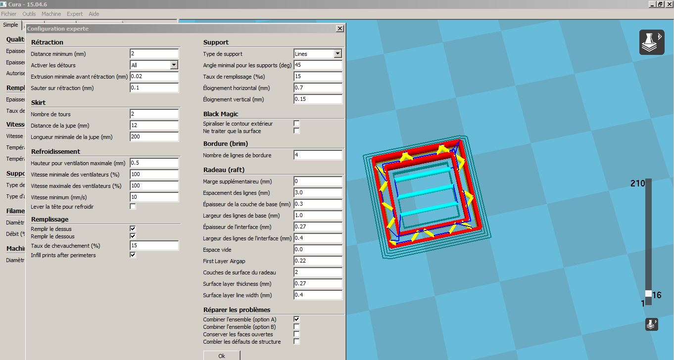Sinon est ce que tu trouve que curaengine est aussi efficace que cura 15.04. voire même le dernier cura 2.1.2 quoique celui ci je le trouve un peu complexe et moins conviviale (trop de paramètres)