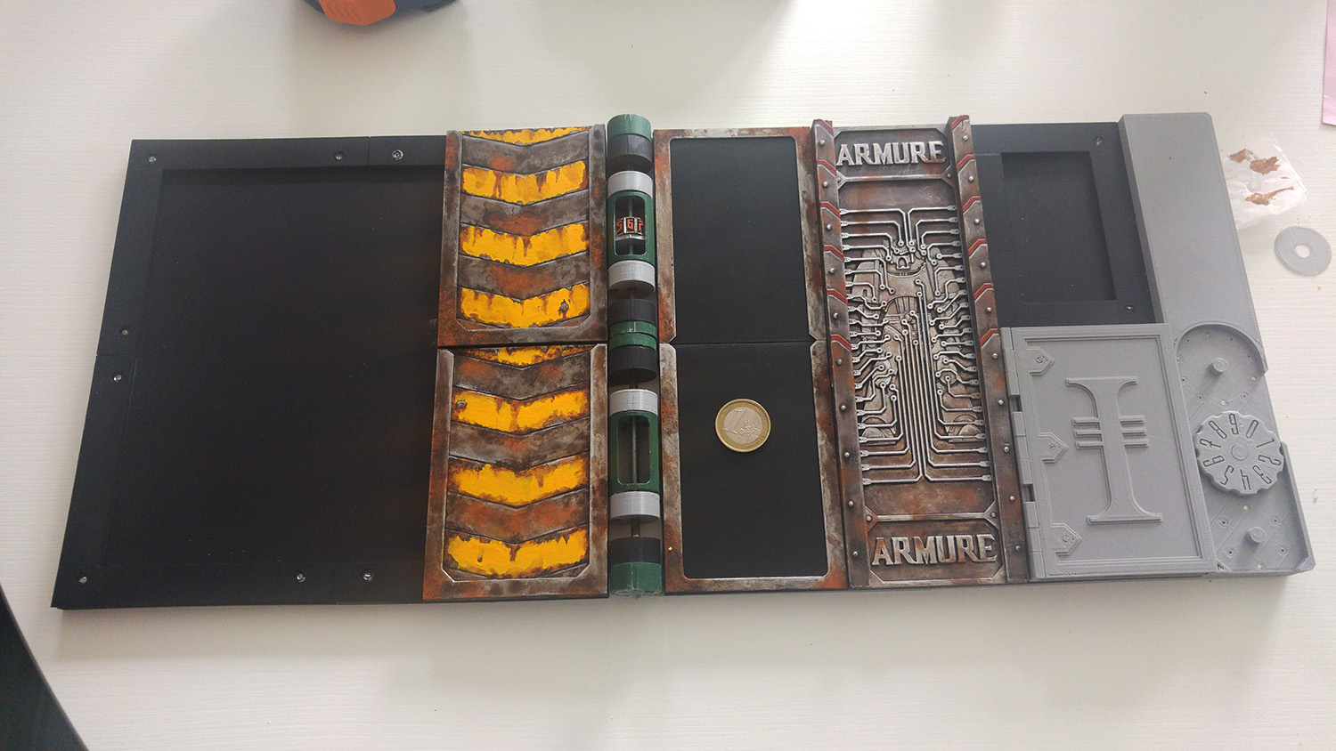 Pareil pour les compteurs de munitions. Chaque compteur a 10 mini aimants intégrés qui permet de créer des crans dans un espace restreint et qui contrairement à des crans fait en pla sont inusables.