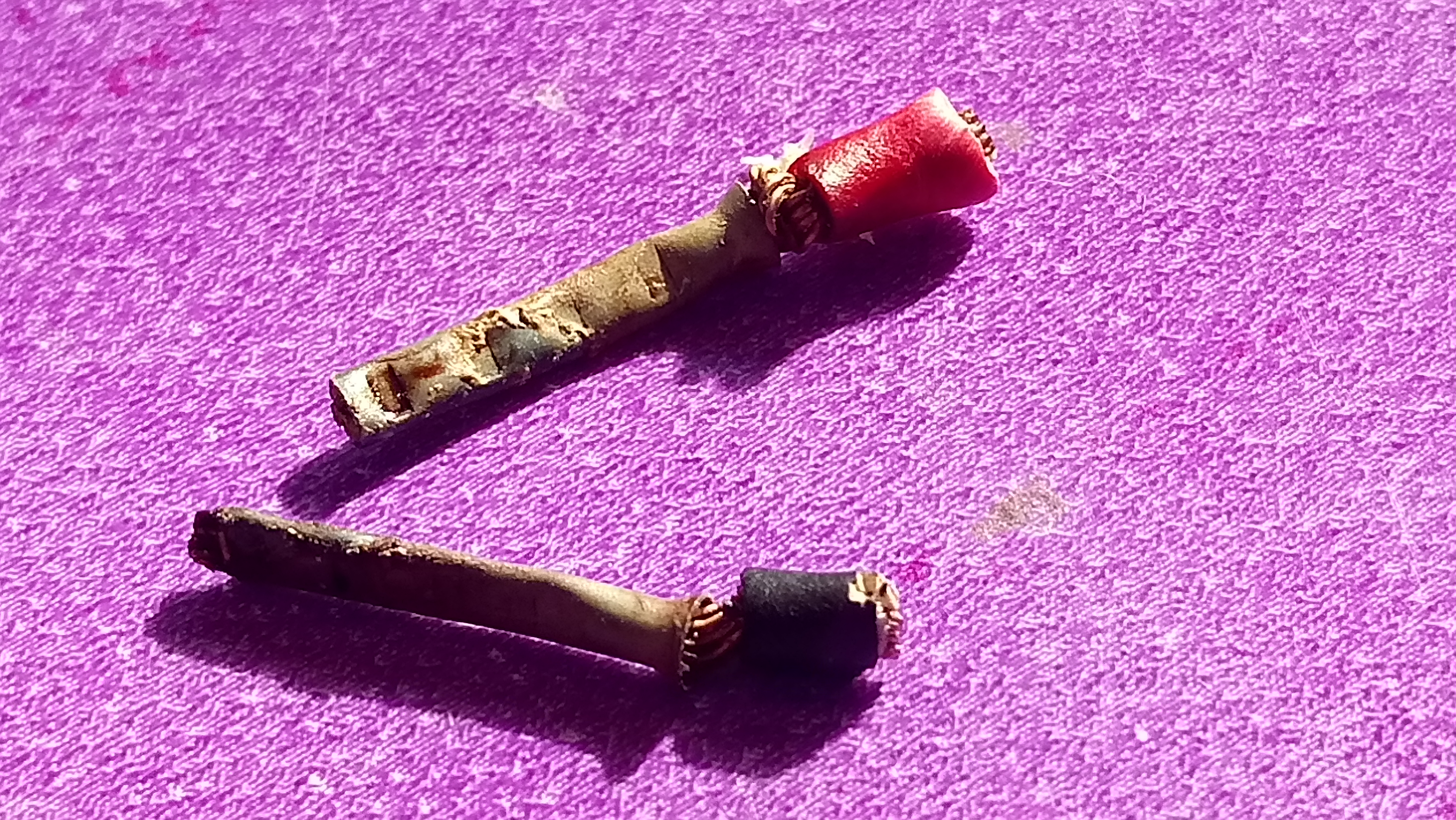 Je joint les photos. Fils une fois remise au propre effectué. + image du bout de fil que j'ai coupé. Ils ont eu un peu chaud semble t'il....A ce demander si parfois il n'y à pas des risques d'incendie...