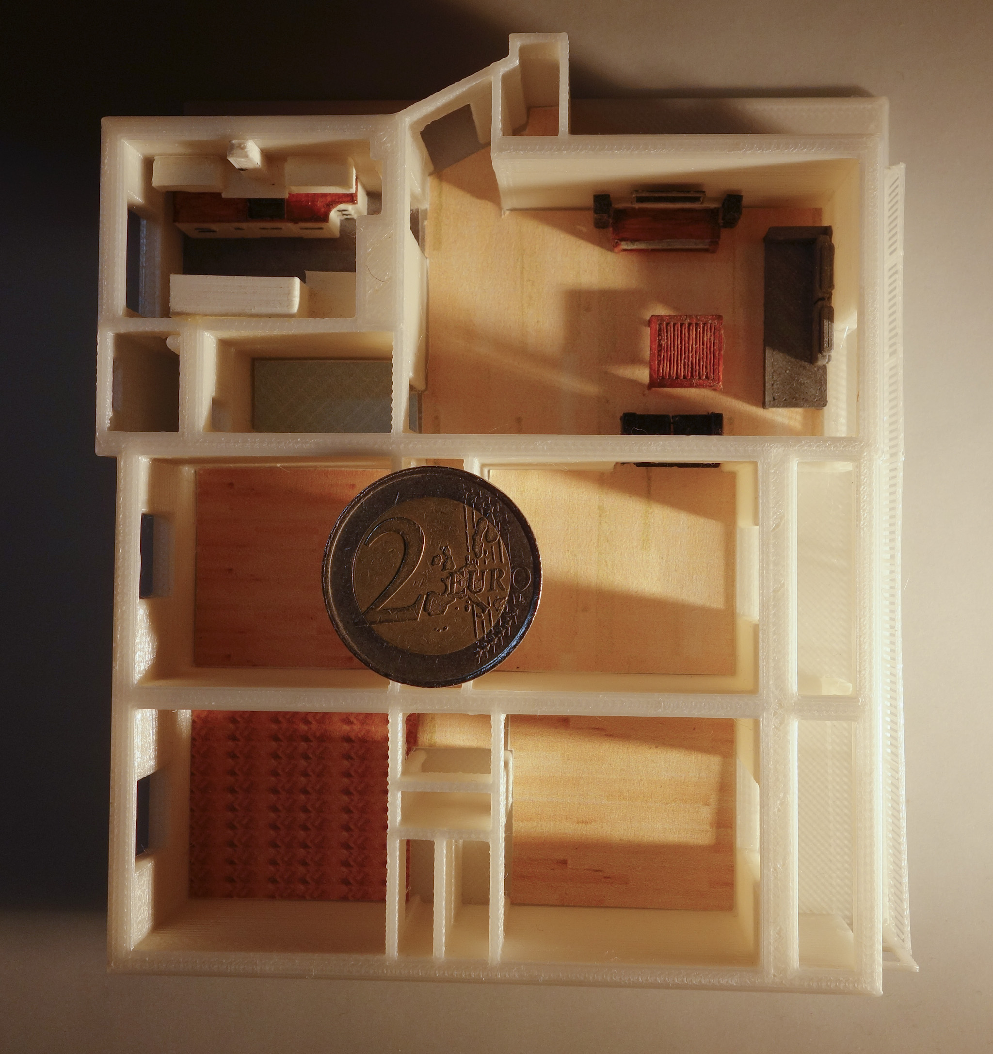 Comme j'ai pris toutes les mesures afin de proposer un plan à nos éventuels visiteurs, j'en ai profité pour en faire une impression 3D.