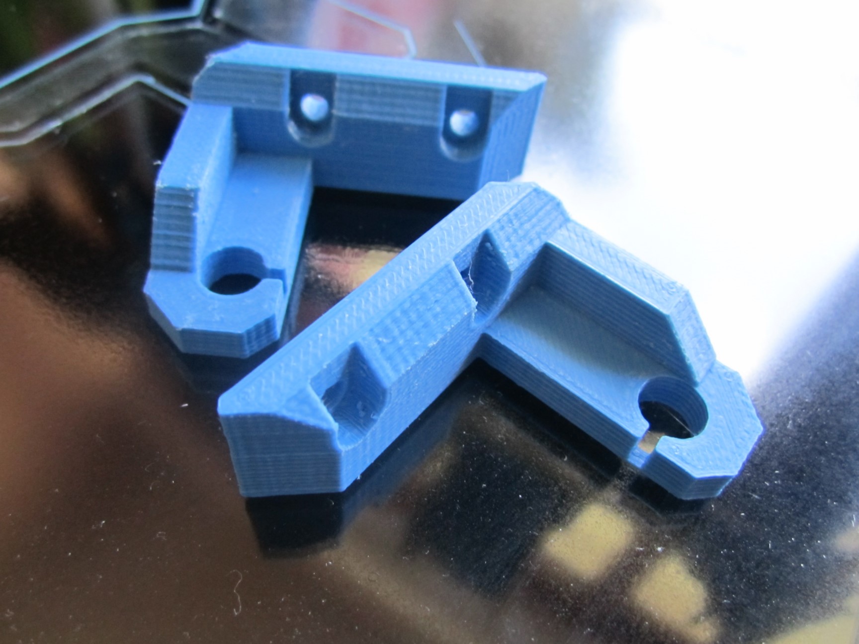 Après avoir corrigé tout ça, réglé la hauteur, je fais mon premier test d'impression, le plateau était trop haut donc le fil restait sur la buse. Bref, c'est en faisant des erreurs que l'on apprend ! Au final j'arrive enfin à imprimer le cube puis ma pièce de rechange avec une qualité très correcte en 0.1 mais qui ne me semble pas être équivalente de la pièce d'origine :