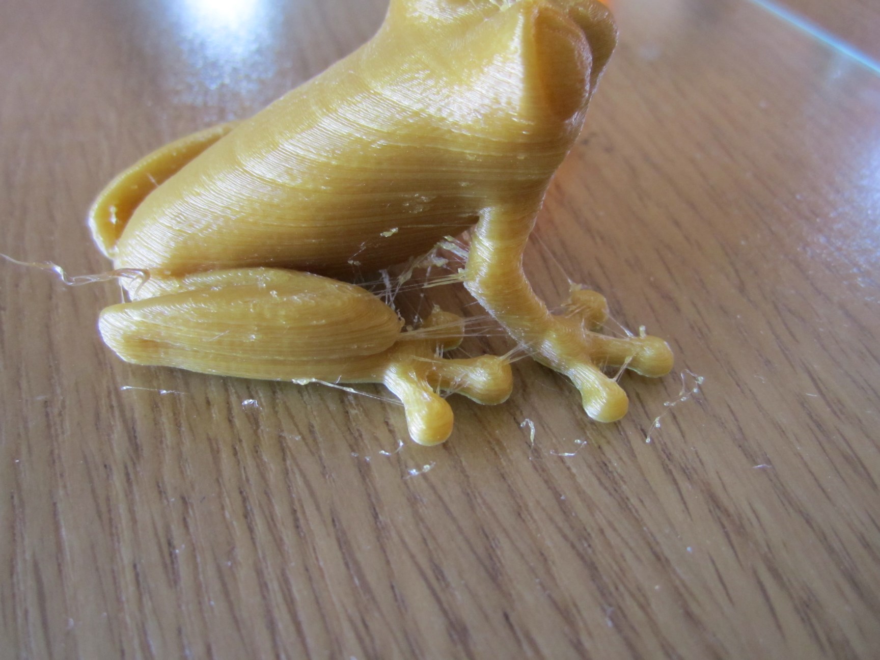 Je n'arrive pas bien à régler le 0. Je l'ai descendu légèrement. Sur les 4 angles je peux passer une feuille quasi sans frottement et au milieu ça frotte vraiment. Sur la grenouille, le fil ne sort pas au début sur la première couche extérieure qui, je suppose, sert à commencer à faire couler le PLA par la buse :