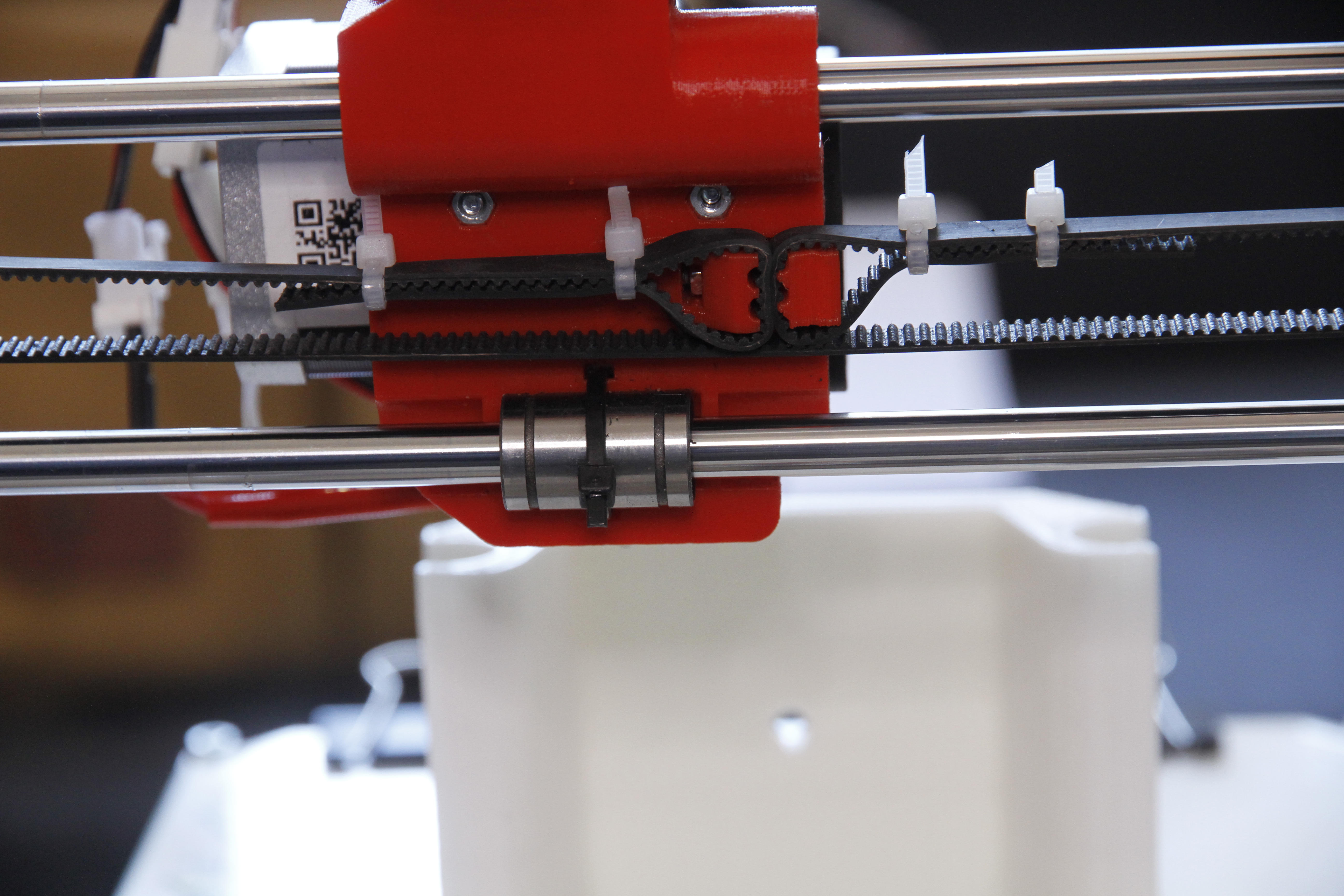 Le fait que la courroie ait un angle sa tension n'est donc pas parfaite et les petits mouvements (manque de précision) comme les rebonds (bosses dans les coins) apparaitront comme des défauts lors de l'impression. Notez que la courroie possède des fils en kevlar à l'intérieur pour justement se comporter comme une chaine en métal mais en évitant le poids et les jeux.