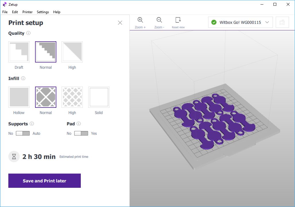 Zetup étant un logiciel client de l'imprimante, il peut être ouverte sur votre PC, votre tablette ou votre téléphone, vous y trouverez les mêmes informations. Après le lancement d'une impression, vous pouvez fermer l'appli, l'imprimante continuera son travail. Pour le moment il n'y a que l'appli Windows et Android qui fonctionne. dans 2 mois la version IOS sera dispo.