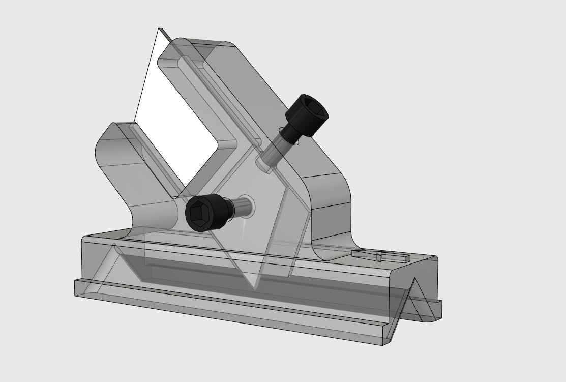 Le réglage est effectué en ajustant la lame le long du guide et bridée par 2 vis de 4mm (mises en force dans le plastique)