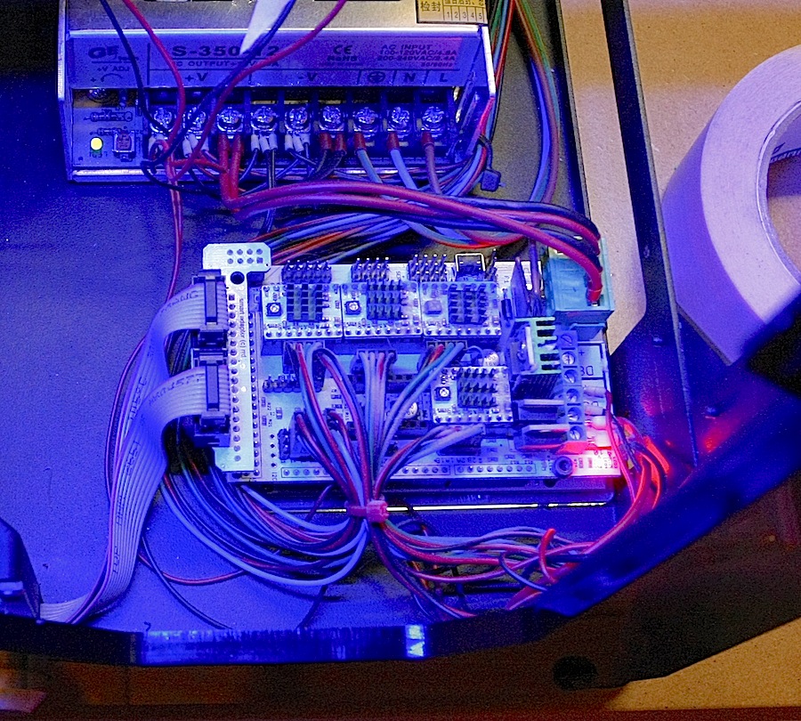 La carte se trouve sous le capot en métal en bas à droite, démontez le coté droit (4 btr) pour accéder aux 2 petites vis cachées par le plexi.