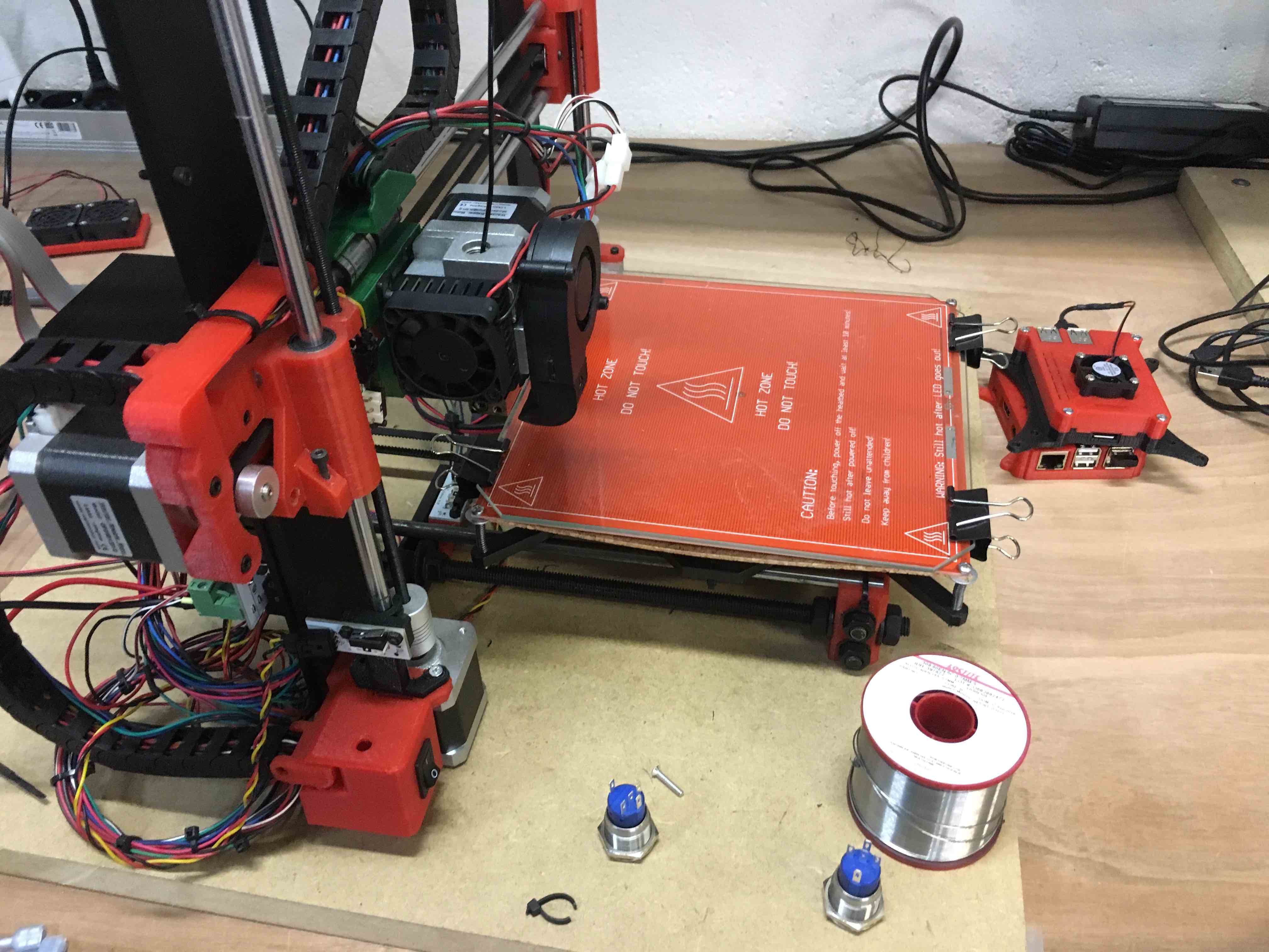 Ce week-end j'aurai imprimé les pièces de modifs qui m'intéressent (roulement pour l'axe Z, fixation sur une planche, bouton marche/arrêt) et je ferai des photo présentable de la bête !