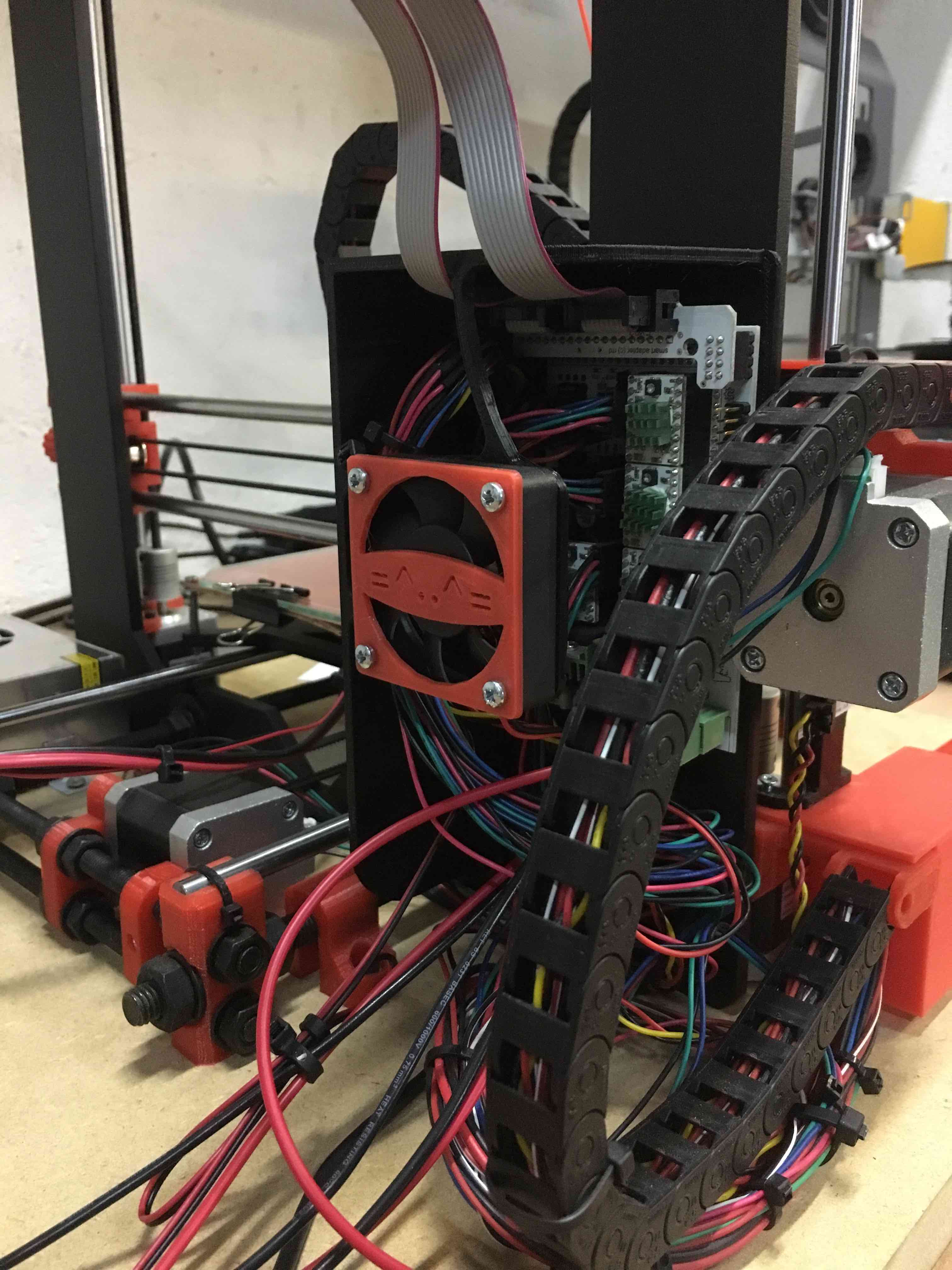J'ai imprimé sans la chauffe, un nouveau support pour la carte avec une paroi déviant le flux du ventilateur hors du plateau..