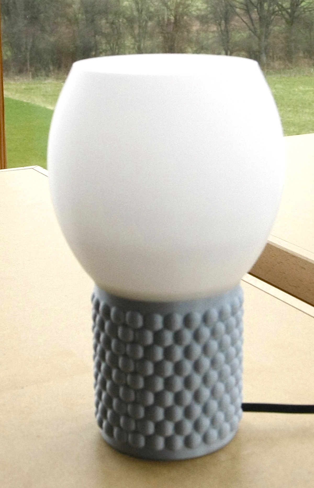 Cette matière convient à merveille pour des abats-jours car elle est opaque tout en diffusant parfaitement la lumière de manière douce. La paroi faisant ici 0,8mm avec des couches de 0,3mm : il faut vraiment regarder de près pour voir les strates tant cette matière s'imprime bien et donne des résultats lisses et mats.