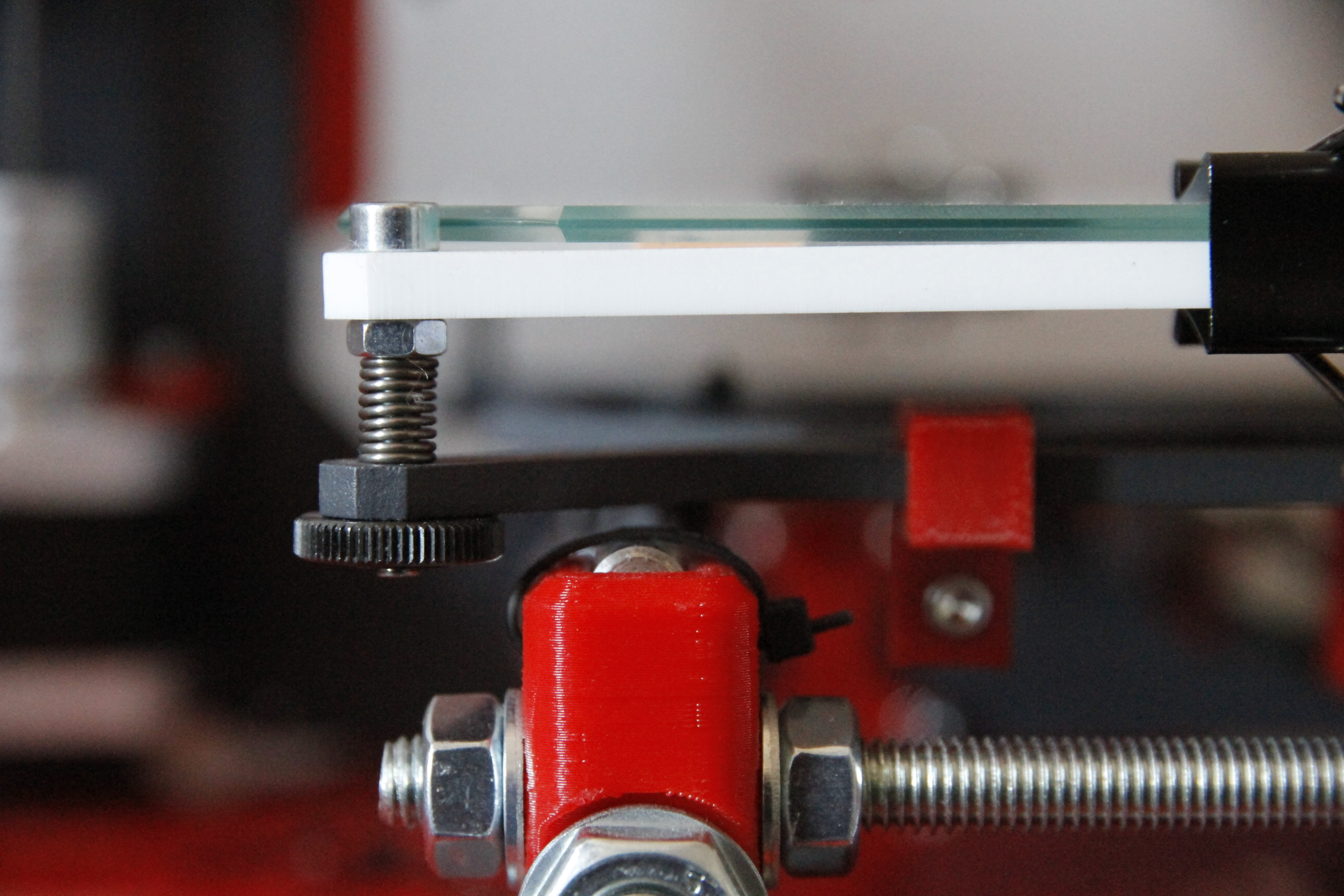 Si ce n'est pas bon, ajustez la vis du switch Z et réglez les 4 vis du plateau. Lors du réglage du plateau au panneau, une feuille de papier doit passer sous la tête. Vous devez sentir légèrement la tête en bougeant un peu le papier.