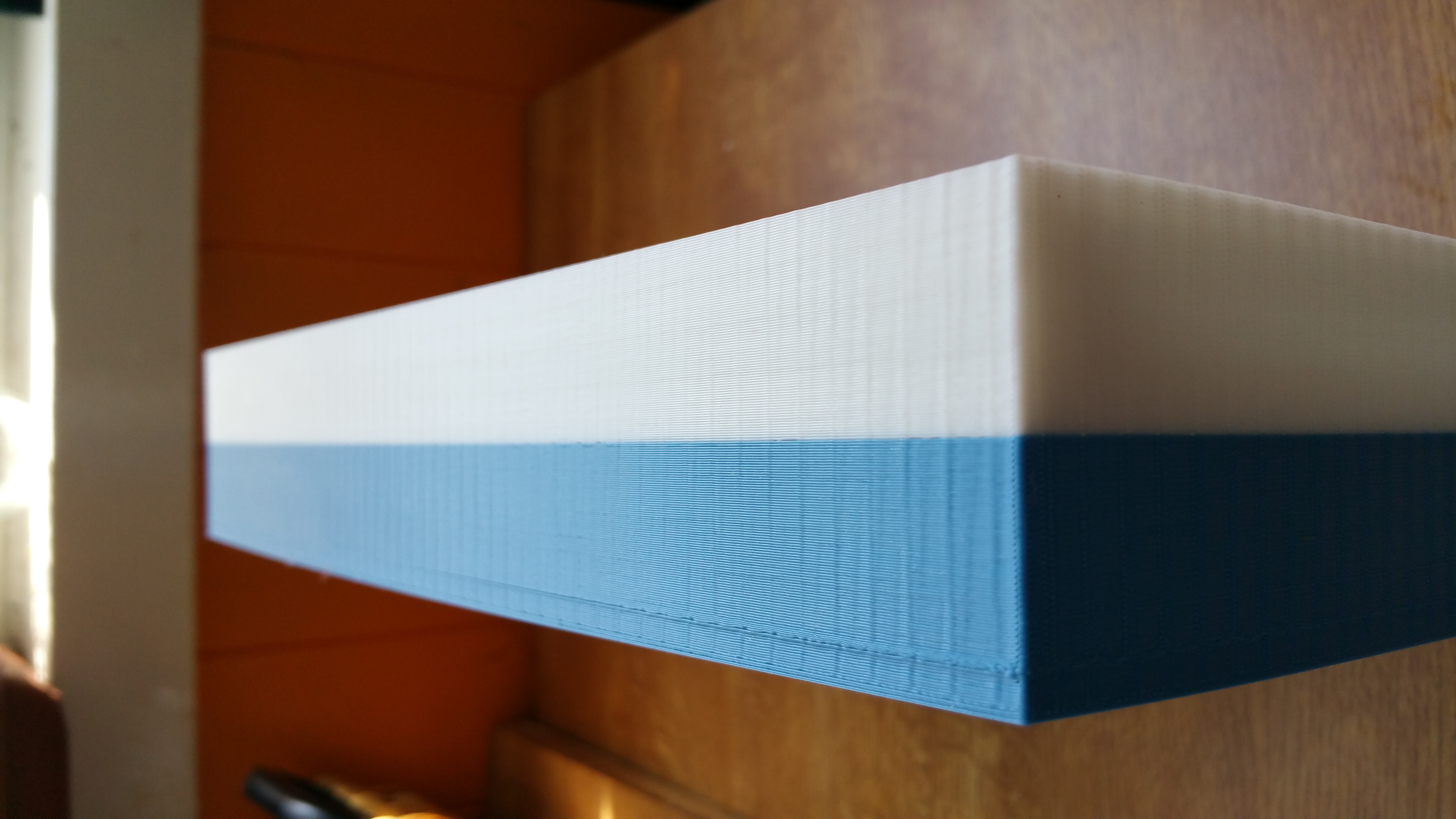 Le filament blanc je l'ai inséré délicatement pendant l'impression à la suite du filament bleu qui se terminait, j'aime assez bien le rendu.