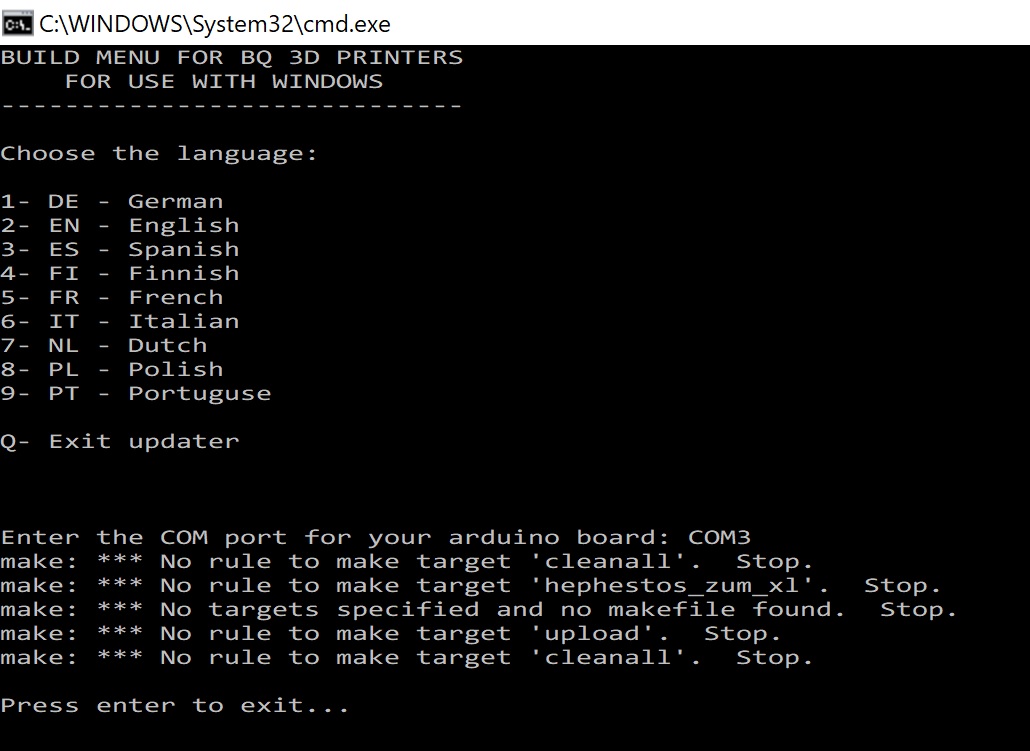 Sur mon Hephestos 2 je n'ai pas le même Make Cmd