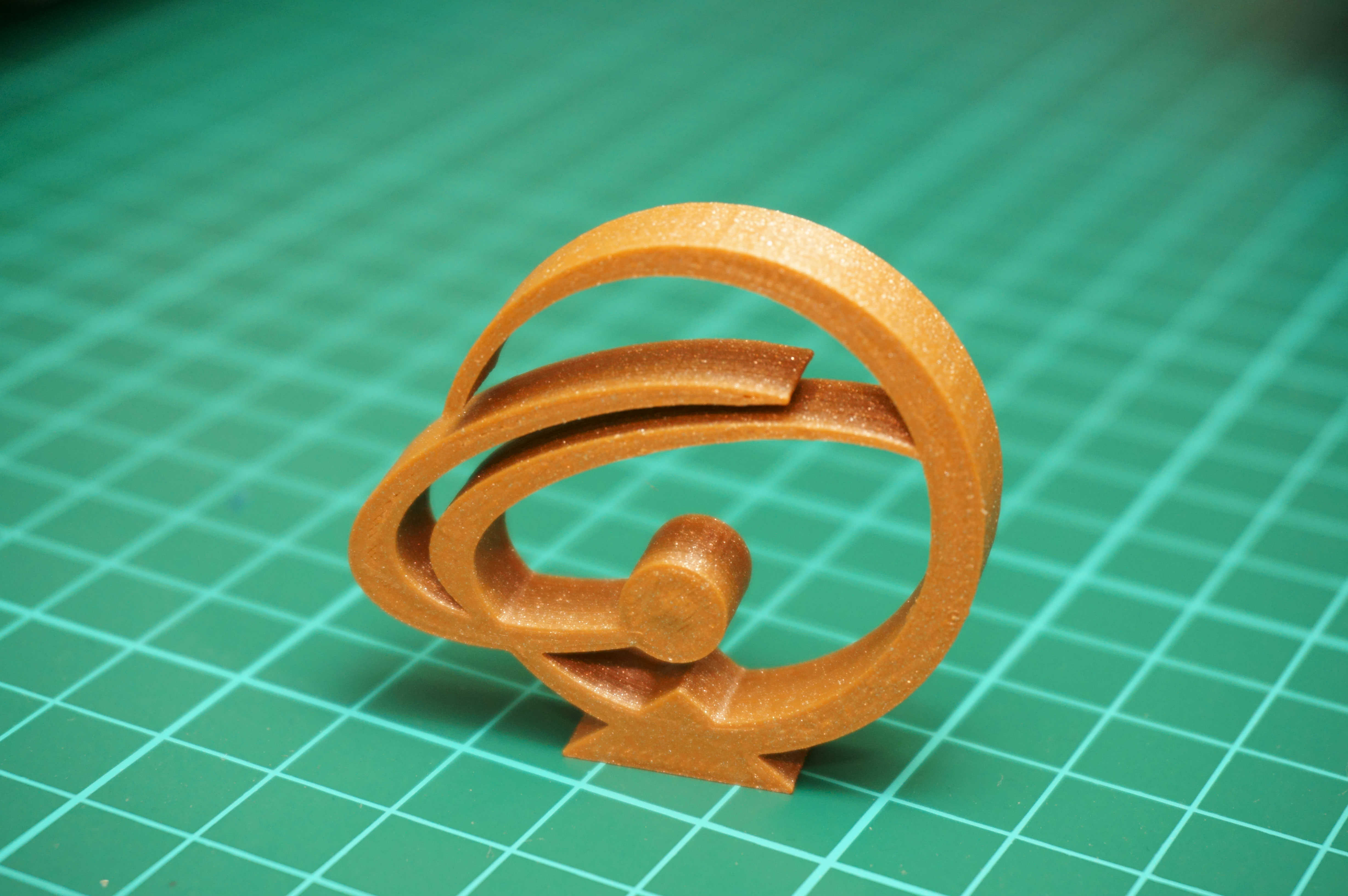 Une petite impression avec le filament caramel métallisé. On ne se rend pas bien compte sur la photo, mais le rendu est vraiment très beau