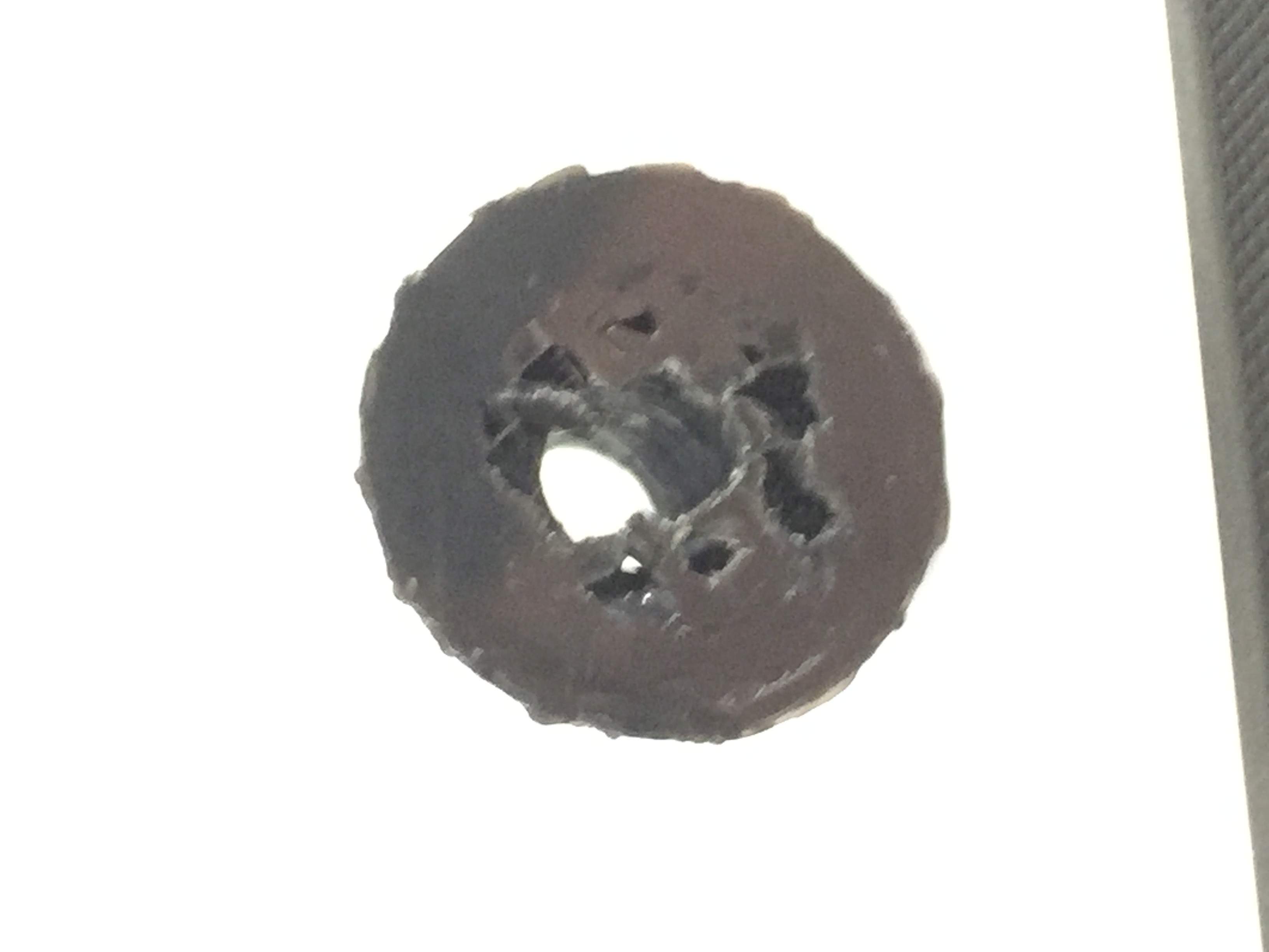 En fait l'imprimante arrive à faire un plat au-dessus de l'écrou mais pas un plat avec un trou au centre (observez le tranchage, le bord du trou va tomber)