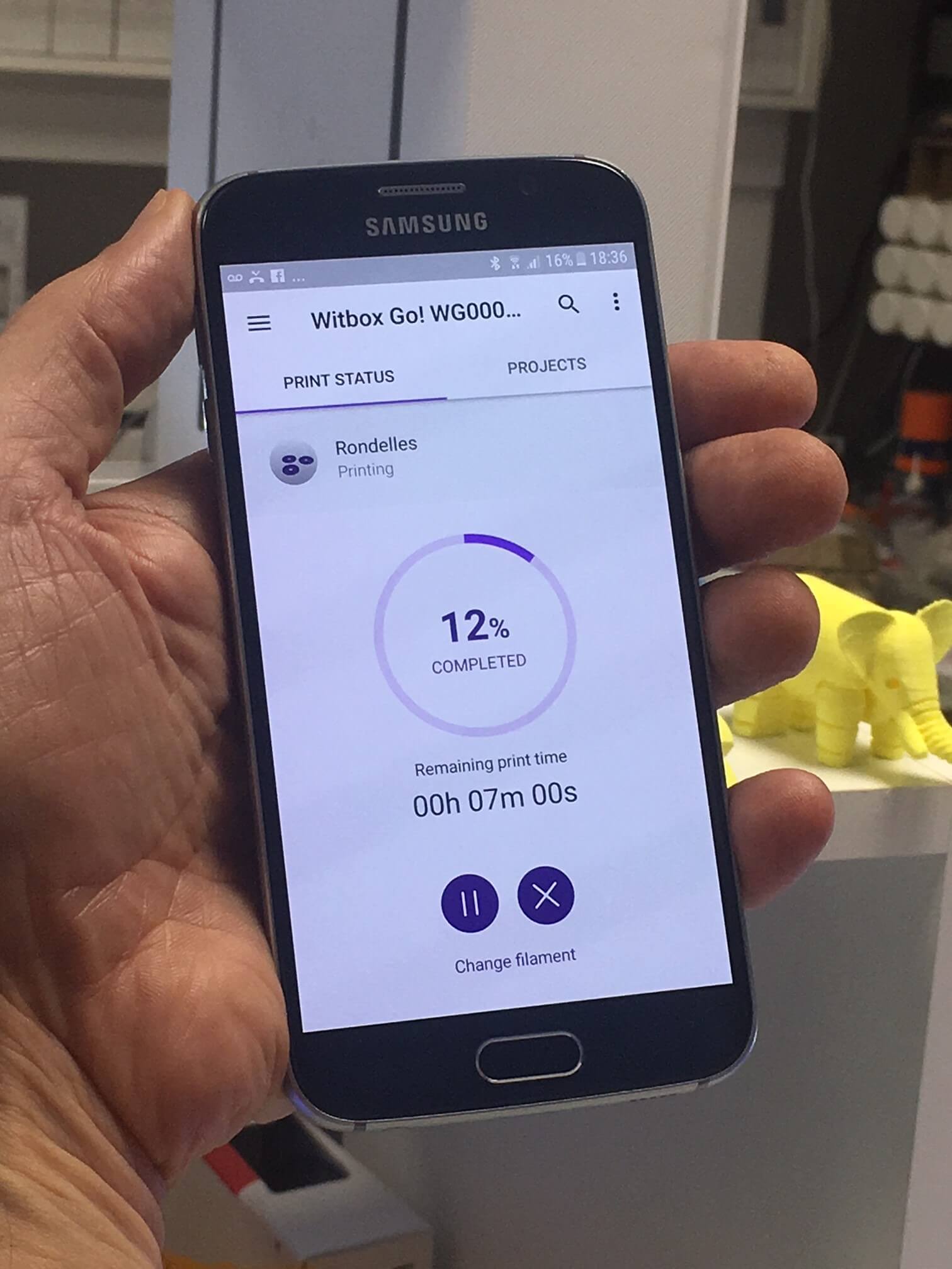 Techniquement absolument tout est sous control, l'évolution de l'impression, le fil restant, sa couleur et son avancement normal.