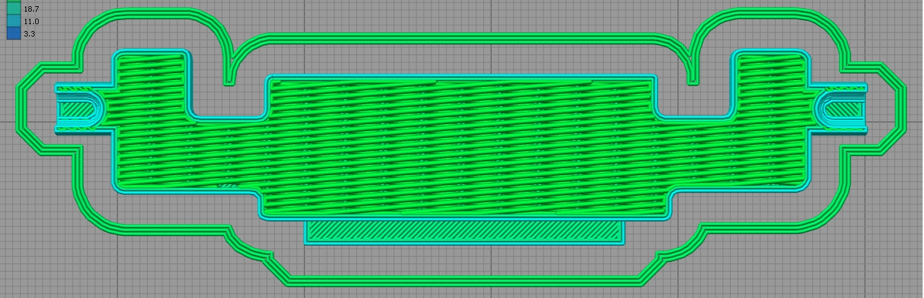 Au niveau de l'impression, je vais voir ce que peut donner un motif de remplissage avec des lignes horizontales uniquement, avec l'espoir que la lumière suive ces lignes.