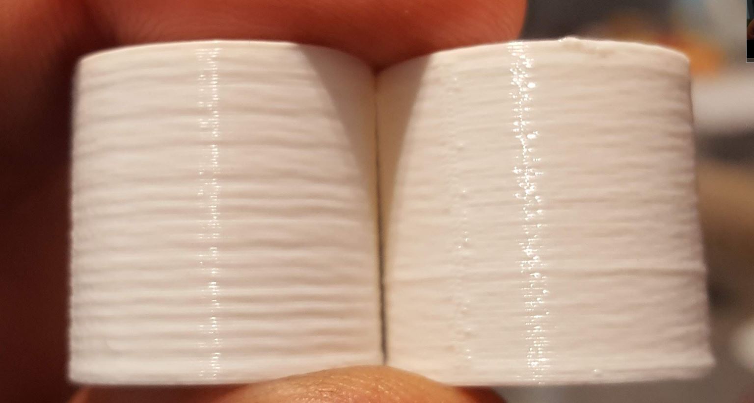 Je me suis bien rendu compte que la mesure au comparateur traduit parfaitement et très précisément ce que sera le visuel sur l'impression. Plus rapide qu'une impression et plus facile à déchiffrer, je ne vais maintenant qu'utiliser ce mode de vérification, écart mini/maxi sur un tour, ca prend 2 minutes avec le PC connecté et l'interface Pronterface IU de Cura