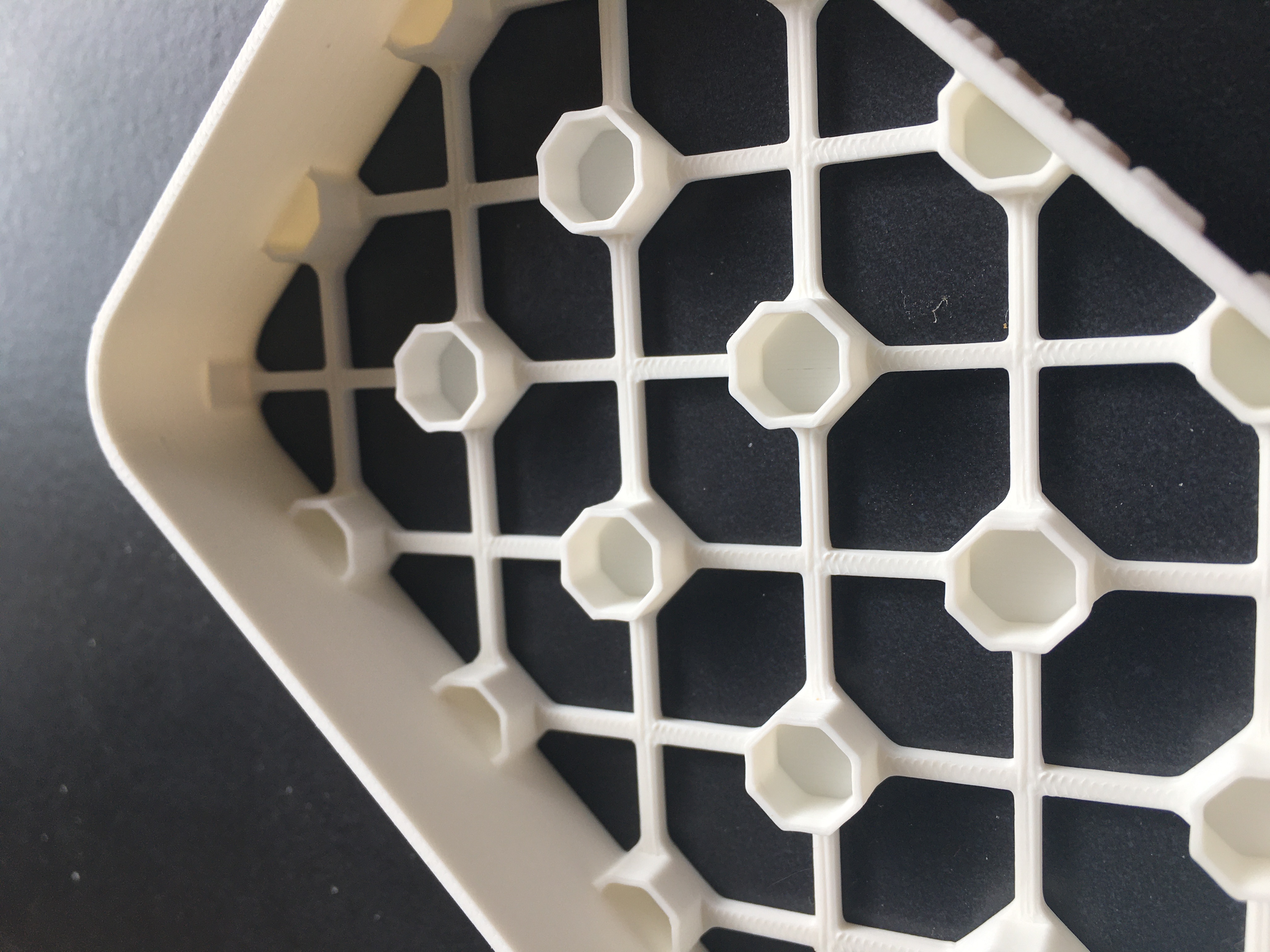 L'impression est si parfaite qu'on imagine que c'est de l'injection, il n'y a qu'en lumière rasante que l'on se rend compte que c'est de l'impression 3D. L'aspect blanc mat donne aussi un rendu parfait sans aucun reflet de lumière.
