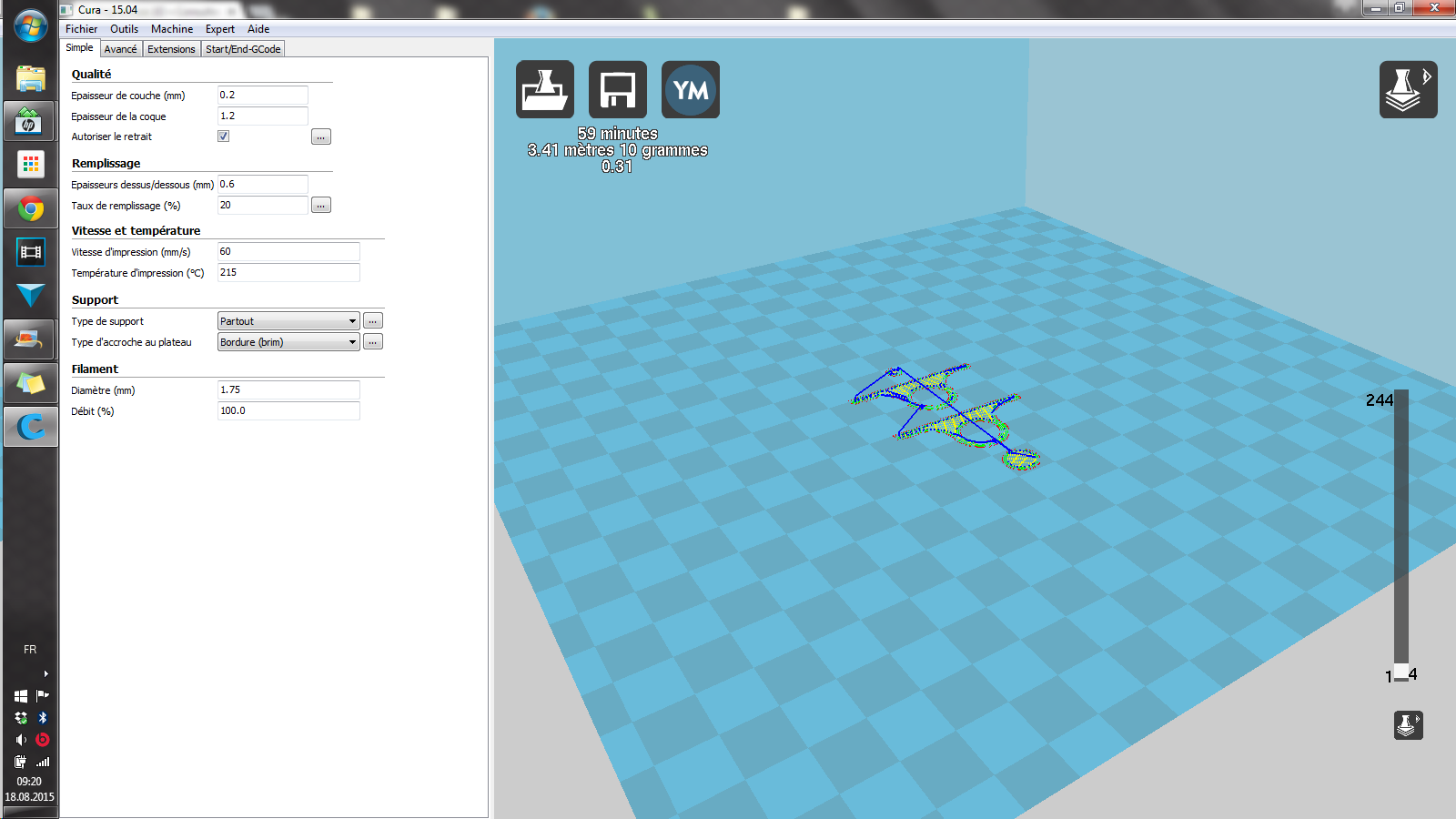 J'ai un petit problème, depuis cet après midi, le ventilateur axial (branché en d9) s'enclenche dès la première couche, et le skirt (ligne autour de la pièce) ne s'effectue plus. J'ai essayé de recharger le profil de premium mais c'est toujours la même chose. C'est très entêtant pour la qualité d'impression... :(