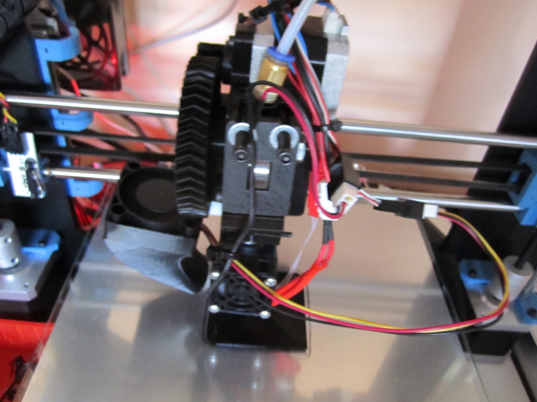 J'ai pour l'instant une version qui fonctionne en mode "bricolage". La chainette n'est pas tenue, j'ai bidouillé pour avoir la bonne hauteur de endstop z, le ventilateur 40x40 ne souffle vraiment pas assez fort (remplacement par l'ancien ventilateur radial en cours), collage maison pour le endstop x.