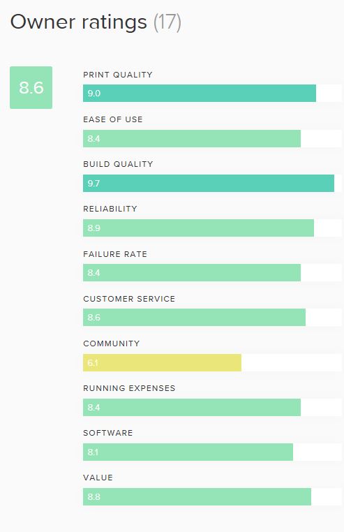 Ce classement a été effectué par les utilisateurs de la communauté 3D Hubs mondiale. Il n'a été pris en compte que pour les imprimantes représentant au minimum 5 revues (d'où les 26 imprimantes du classement.