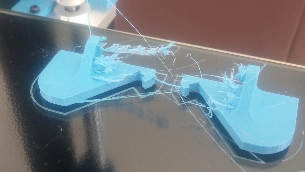 Mais dans le cas présent ca ressemble plus à un mauvais tranchage de Cura car les fils sont en haut de la pièce et pas en bas. Il arrive que Cura fasse des choses étonnantes.