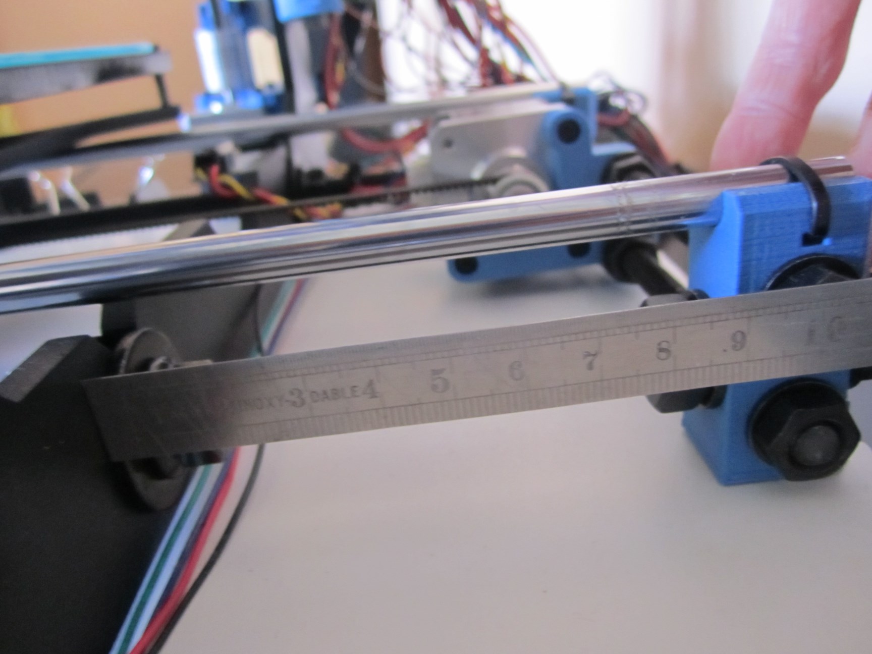 Avant de travailler la rigidité, il me reste un souci : je mesure 19cm de déplacement en Y seulement au lieu des 21cm demandés dans les compléments de montage. J'ai pourtant bien respecté la règle des 9.1cm : Le réglage de fin de course Y est au maximum, c'est à dire que la vis est vissée à fond (jusqu'à la limite où il n'y a plus de pas de vis) car sinon, la courroie bloque de manière mécanique.