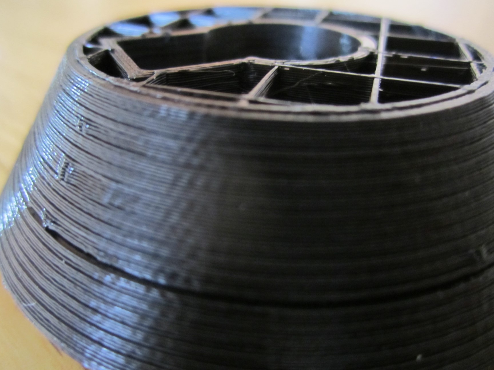J'ai un souci étrange sur une impression qui avait fonctionné en hauteur de couche de 0.1 et qui cette fois en 0.06 montre la structure interne. L'épaisseur des parois dans Cura est de 1.2 mm. Est-ce que la diminution de la vitesse peut-être la cause ?