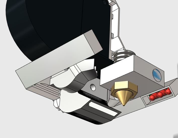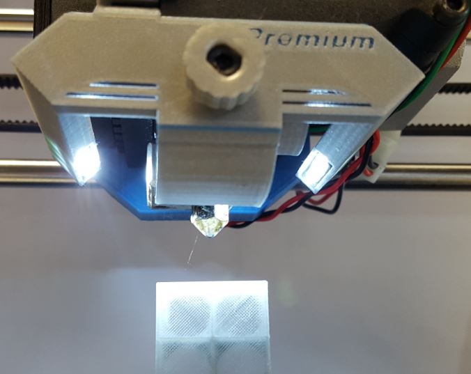On remarque donc les deux barreaux de led blanches, l'embout de refroidissement du haut de buse et la connexion vers l'alimentation permanente 12V (à droite.