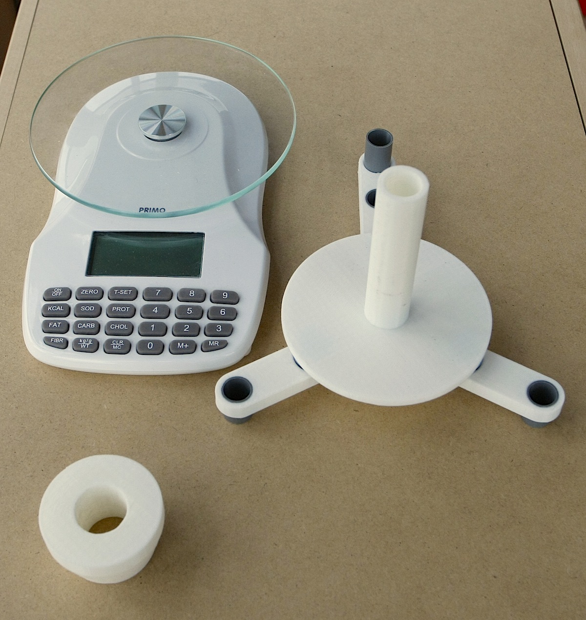 Support bobine très largement inspiré d'un modèle populaire vu sur Thingiverse et adapté à une balance électronique.