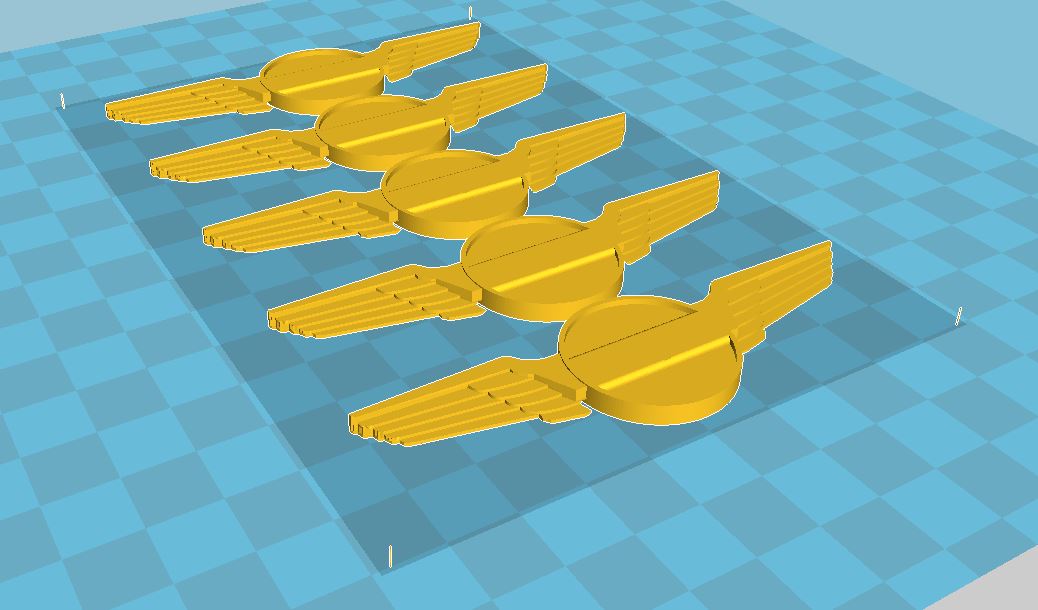 Pour garder le centrage des deux fichiers dans Cura, j'utilise 4 pieds aux 4 coins extrêmes de l'ensemble des 5 pièces.