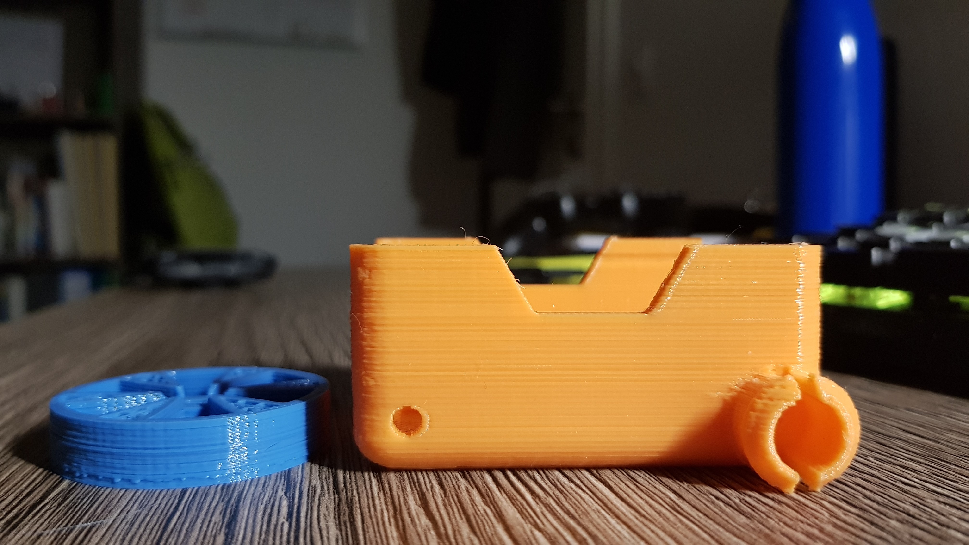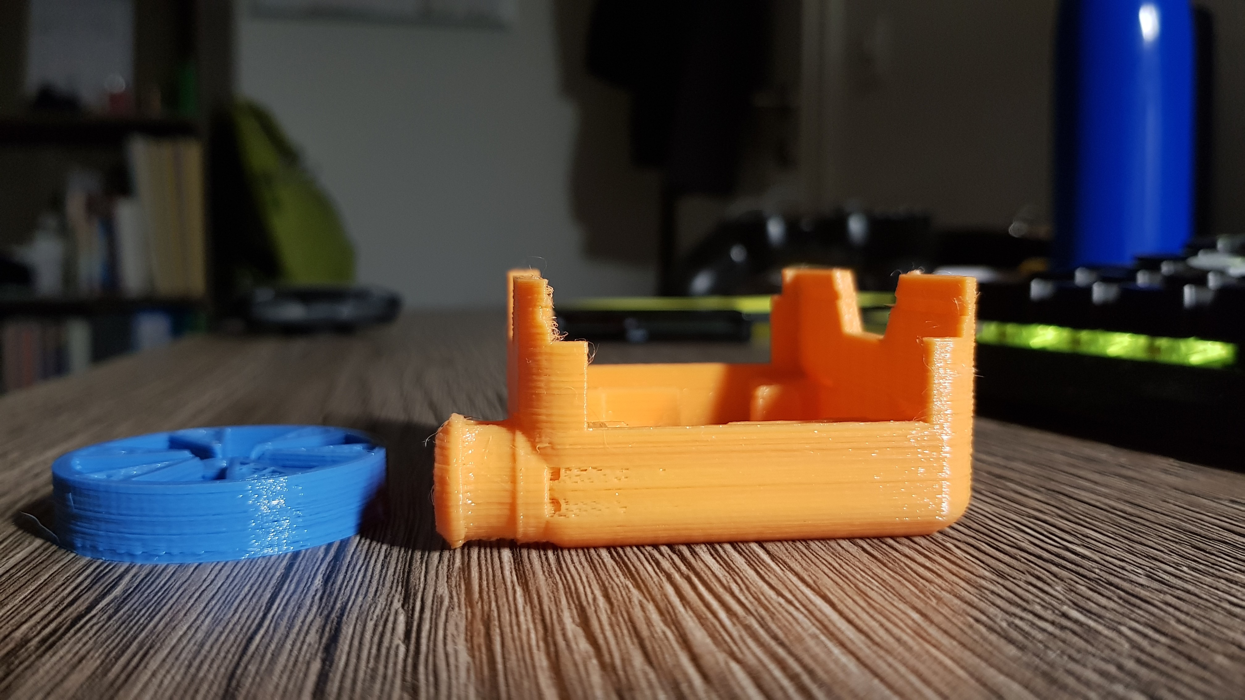 Voici une photo des deux dernières impressions. Les pièces sont imprécises, et les lignes beaucoup trop visibles (comme si on était à 0.45 mm voir plus).