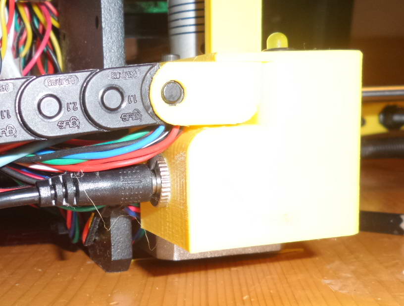 J'ai mis place un bouton marche/arrêt et une led de mise sous tension et un jack femelle ( acheté sur ebay) dans un petit boitier coté gauche de ma prusa I3.